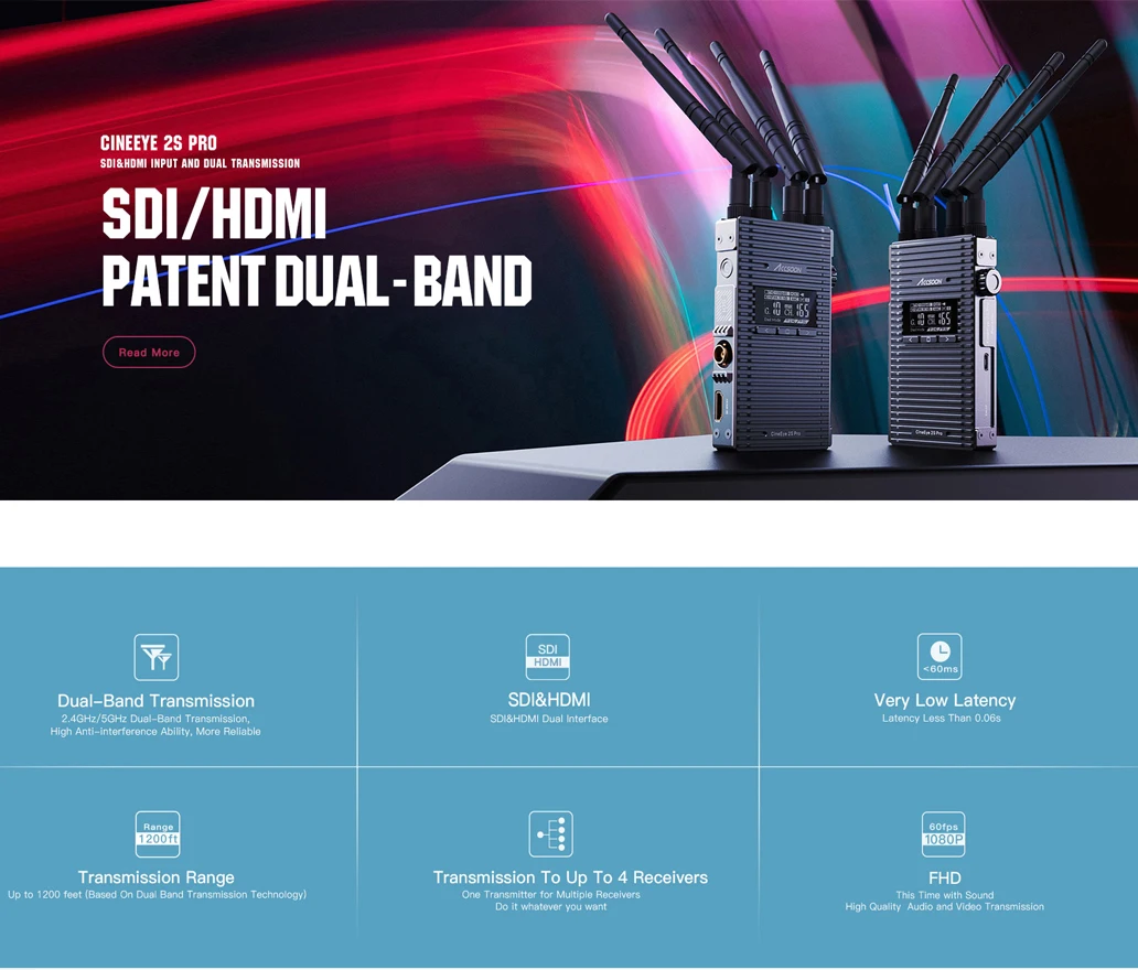 ACCSOON CineEye 2 2S Pro 5 ГГц двухканальная Беспроводная стандартная система SDI 1080P 60fps 350 м для прямой трансляции камеры