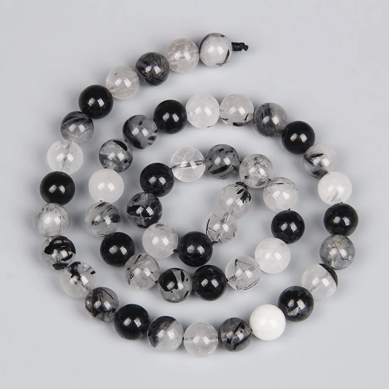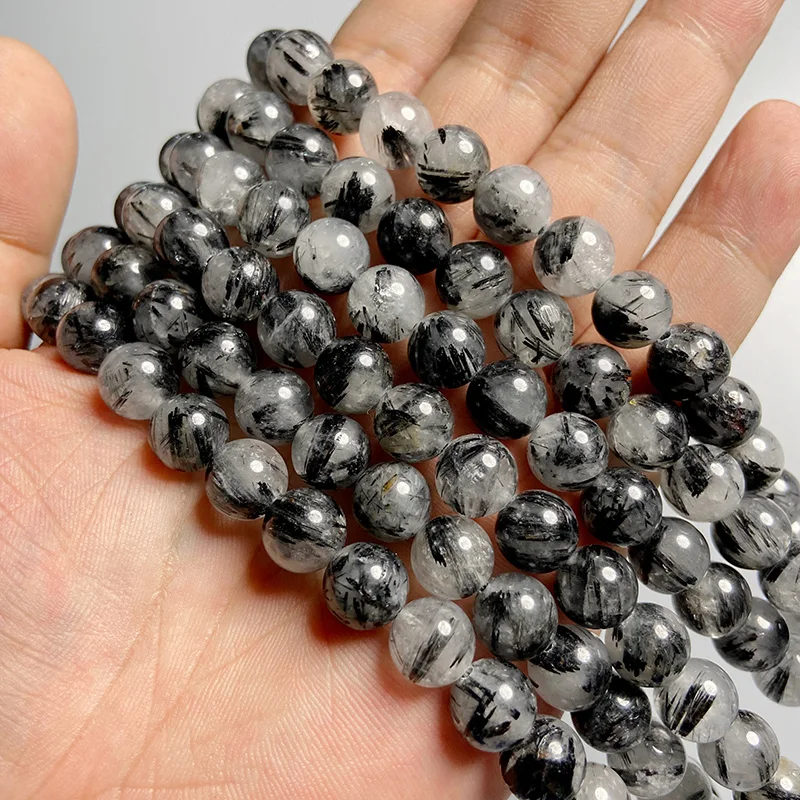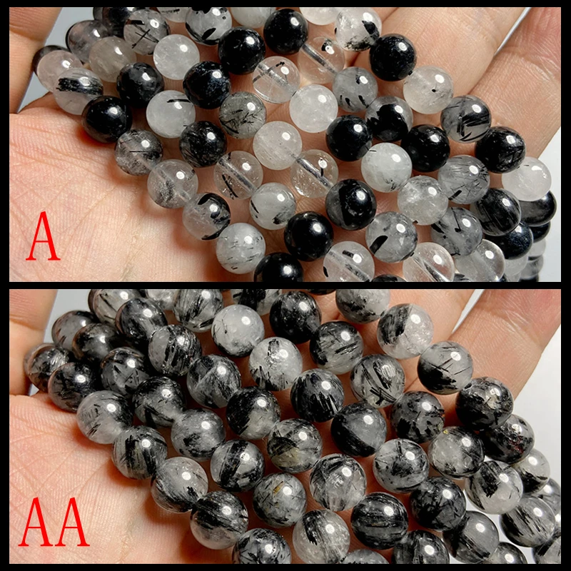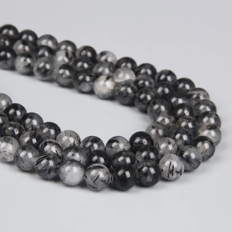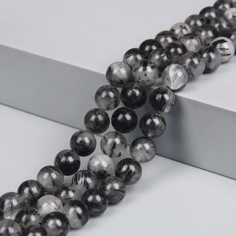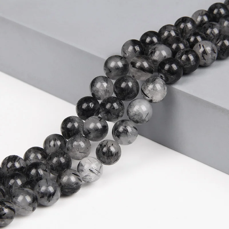 Натуральный камень, черный рутилированный кварц, круглые свободные богатые бусины для женщин, рукоделие, изготовление ювелирных изделий, браслет
