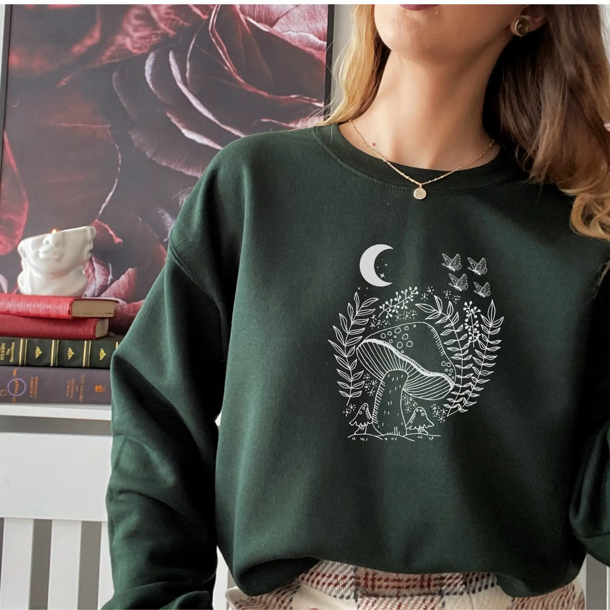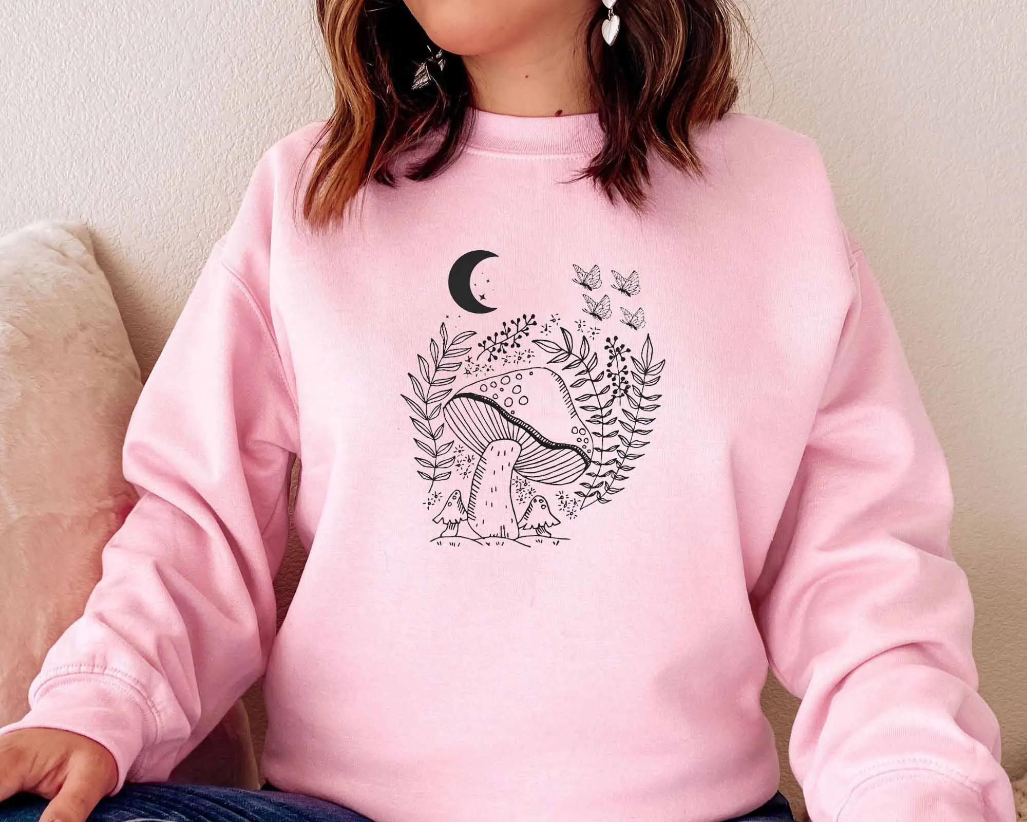 Толстовка с бабочкой, толстовка с Луной, Свитшот в виде грибов, хлопковая одежда, мистическая толстовка с зудом, легкие футболки в эстетике