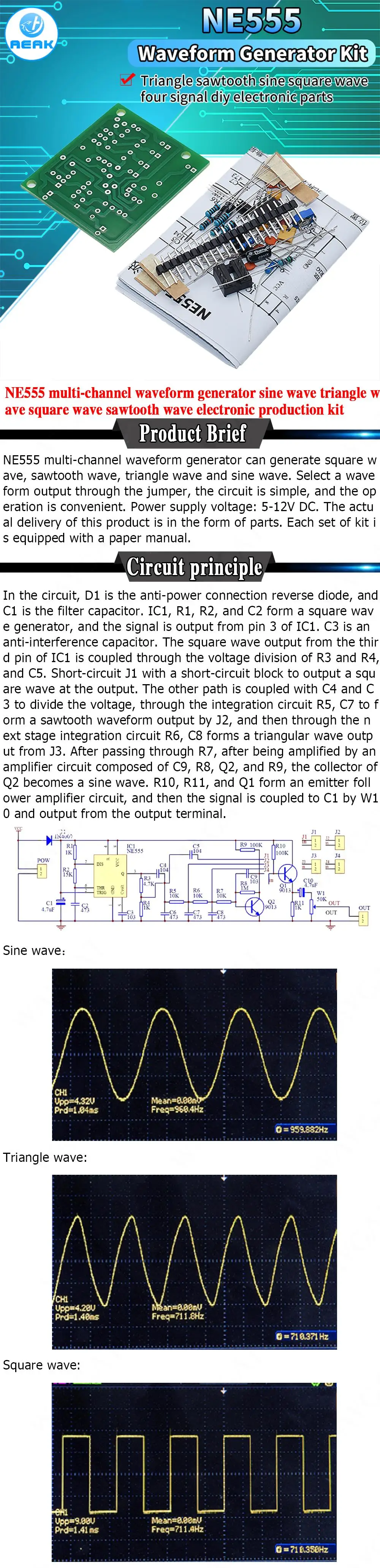 DC6-12V NE555 модуль импульсного генератора синусоидатреугольниктелефон, многоканальный генератор сигналов, набор для самостоятельной сборки