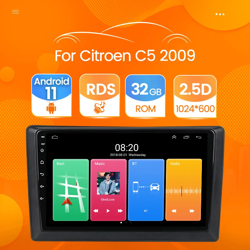 Автомагнитола 2 + 32 Гб ПЗУ Android 11 для Citroen C5 2 2008 - 2017 GPS-навигация стерео Мультимедийный Плеер Carplay 2 DIN без DVD