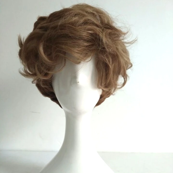 Парик для косплея гринделвальда Фантастические звери, термостойкие короткие вьющиеся волосы с коричневыми кудрявыми волосами + шапочка для парика
