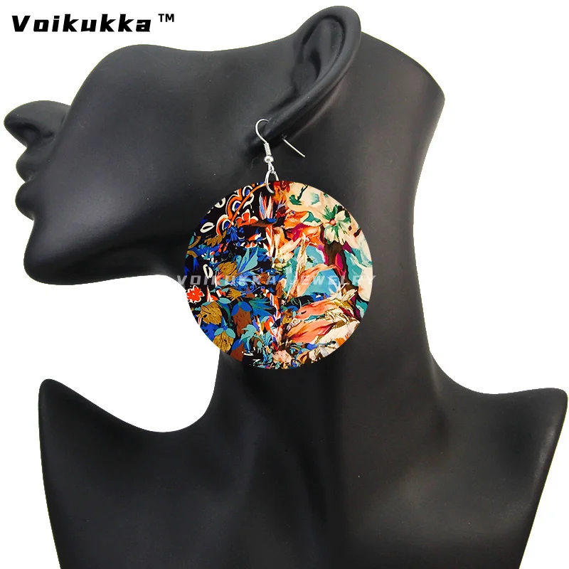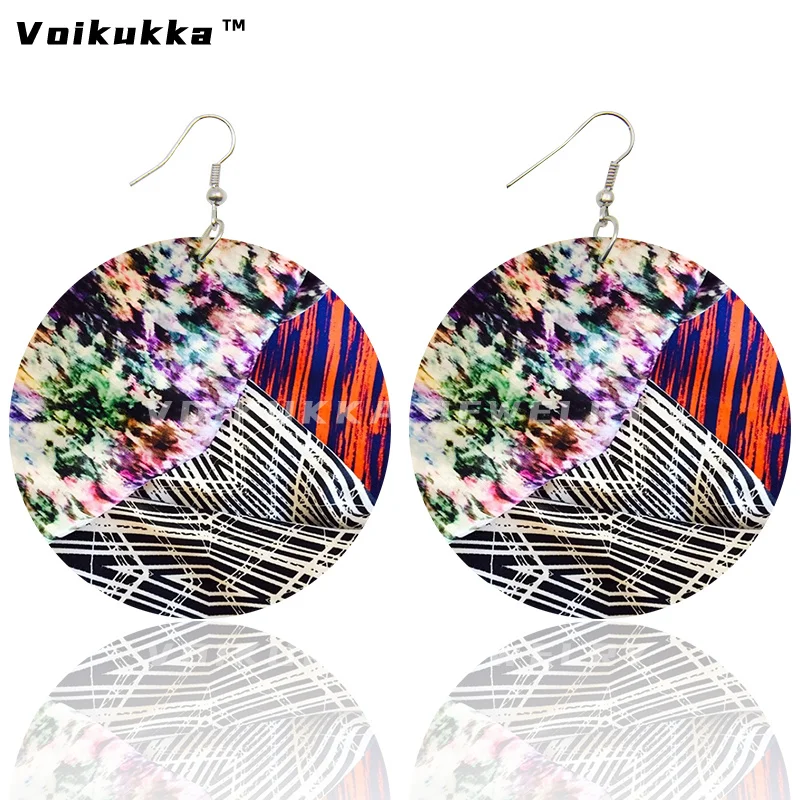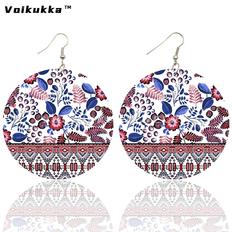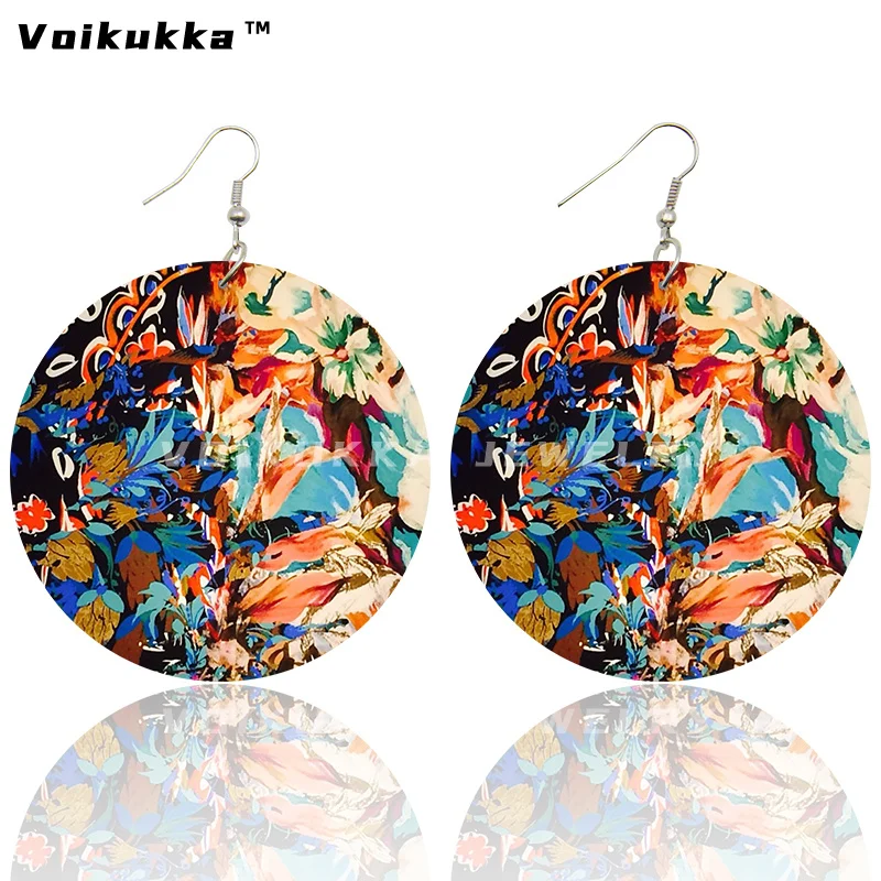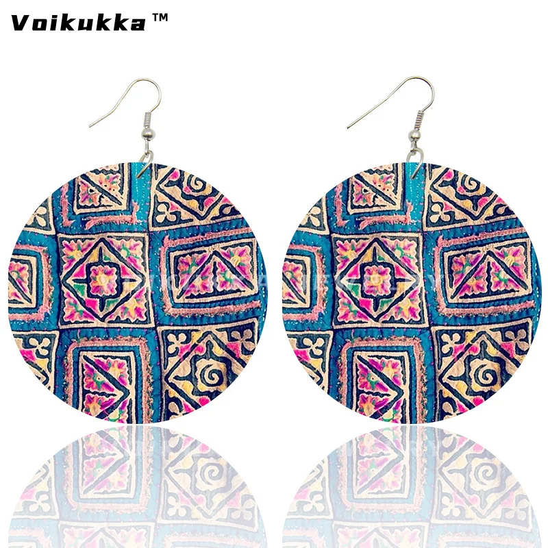 Voikukka ювелирные изделия с обеих сторон печать деревянные Круглые Капли модные серьги для женщин Подарки богемный тканевый узор аксессуары
