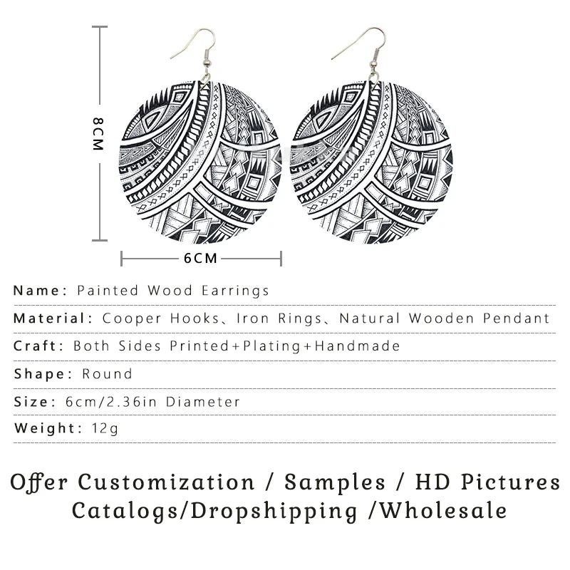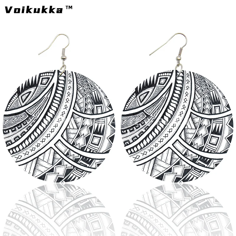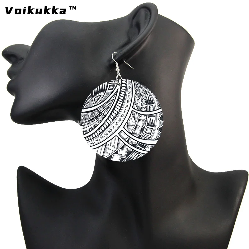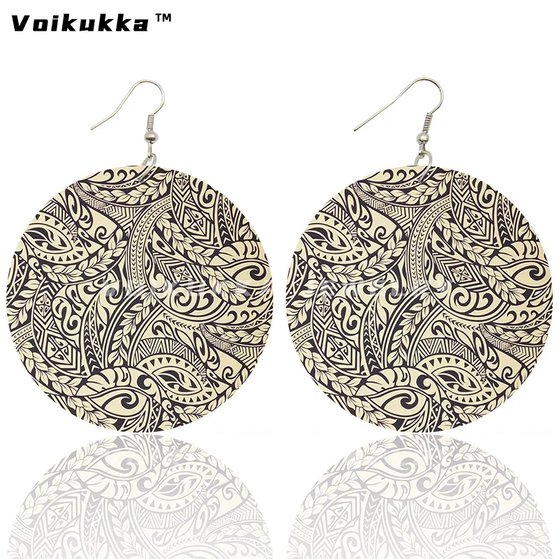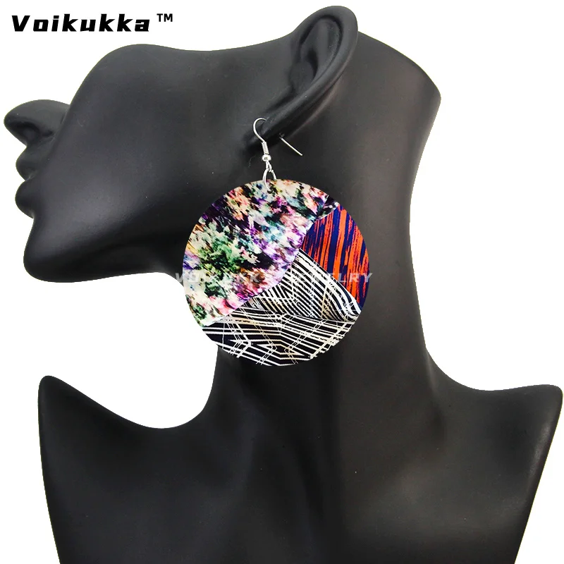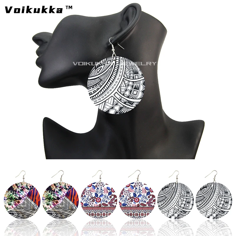 Voikukka ювелирные изделия с обеих сторон печать деревянные Круглые Капли модные серьги для женщин Подарки богемный тканевый узор аксессуары