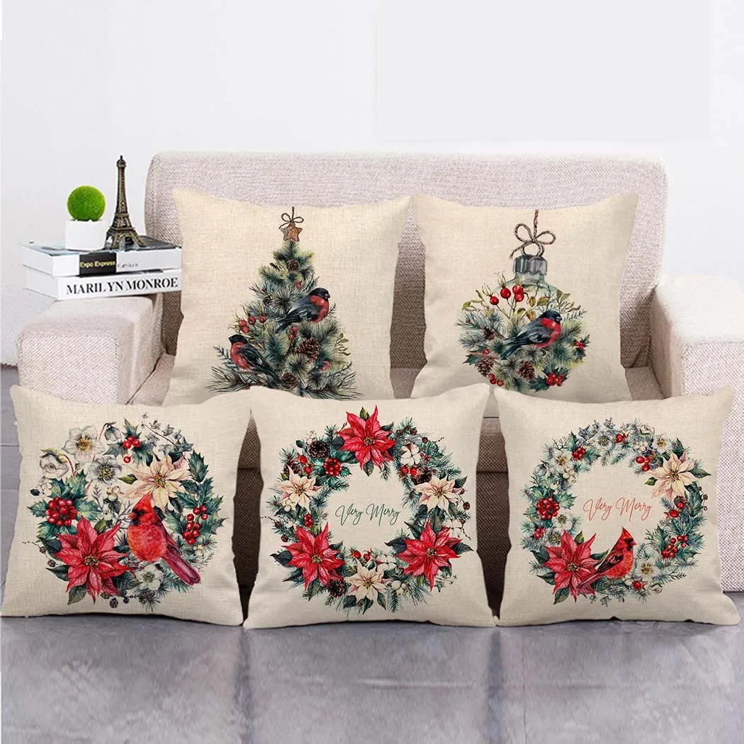 45*45 Рождественская наволочка квадратной формы с принтом, наволочка из хлопка и льна, Рождественский домашний диван, стул, искусственное кресло, чехол, Декор