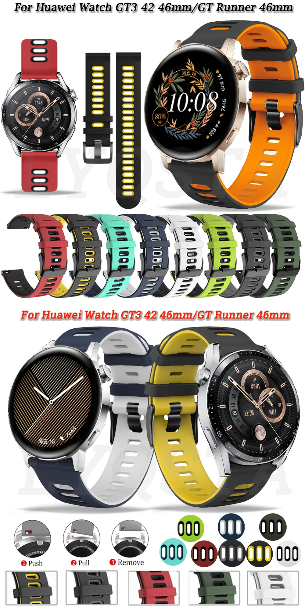 Ремешок для Huawei Watch GT3 GT 3 GT2 42 мм 46 мм, сменный Браслет для наручных часов Huawei GT Runner 46 мм, разные цвета