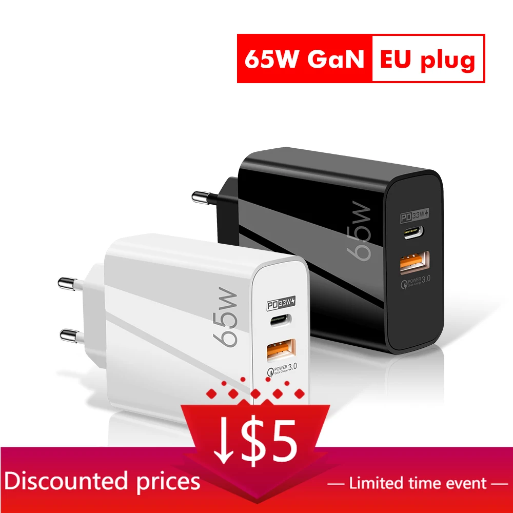 Зарядное устройство USB C на 2 порта, 65 Вт, QC 3,0 PD 3,0 GaN