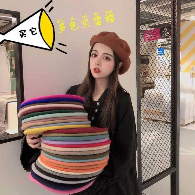 Простая шапка-берет для женщин и девушек в винтажном стиле, французская теплая шерстяная Зимняя Шапка-бини, шапка-берет, однотонные элегантные женские зимние шапки