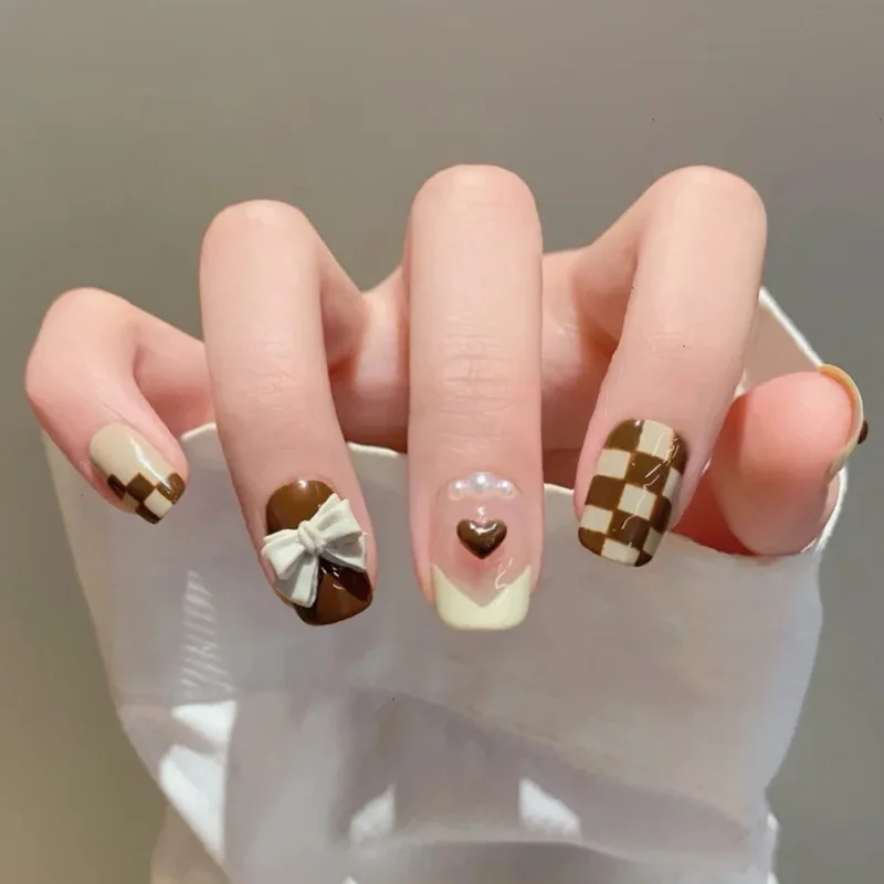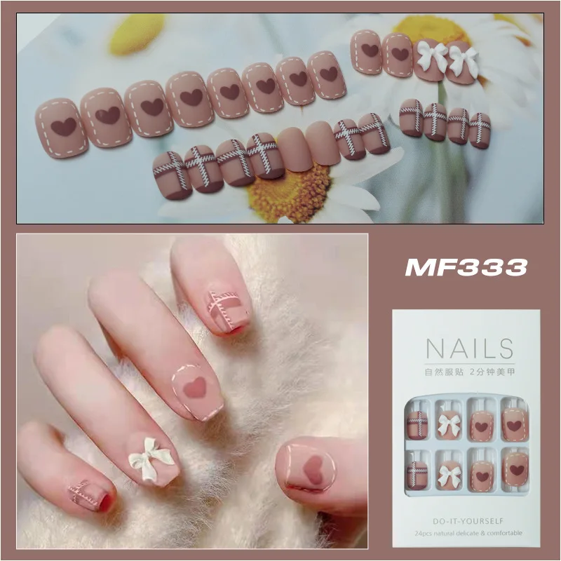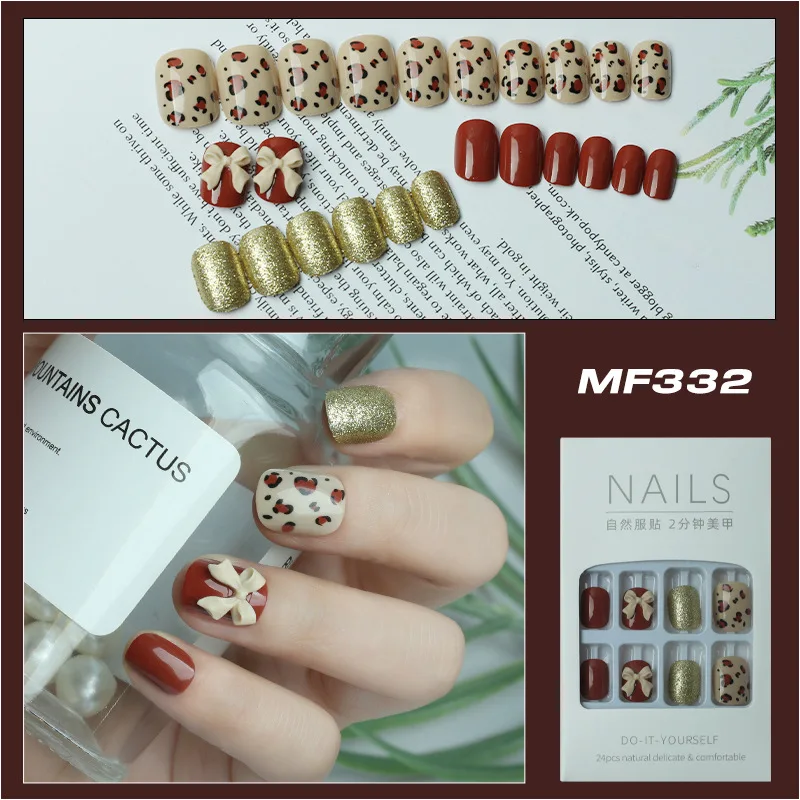 24 шт. патчи для ногтей с переходом цвета молочного чая, с 3D банто...