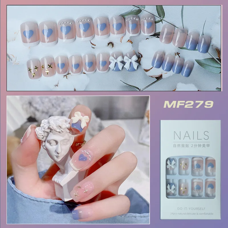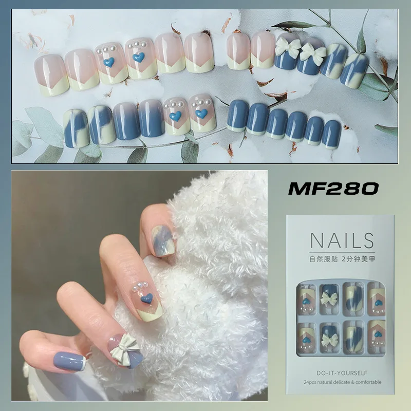 24 шт.кор. накладные ногти гроб носимый дизайн банта искусственные ...