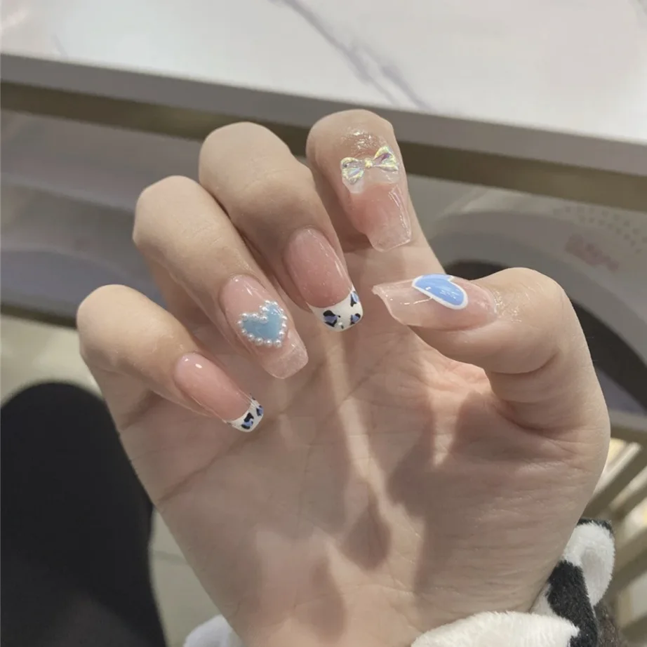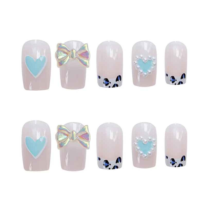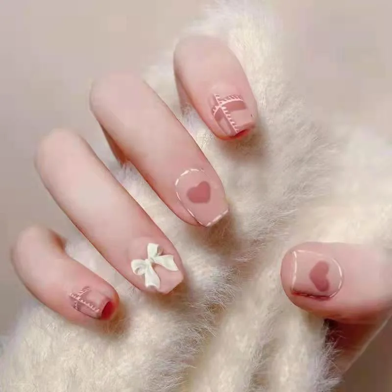 24 шт., накладные ногти с розовым бантом и сердцем, длинные ногти в...
