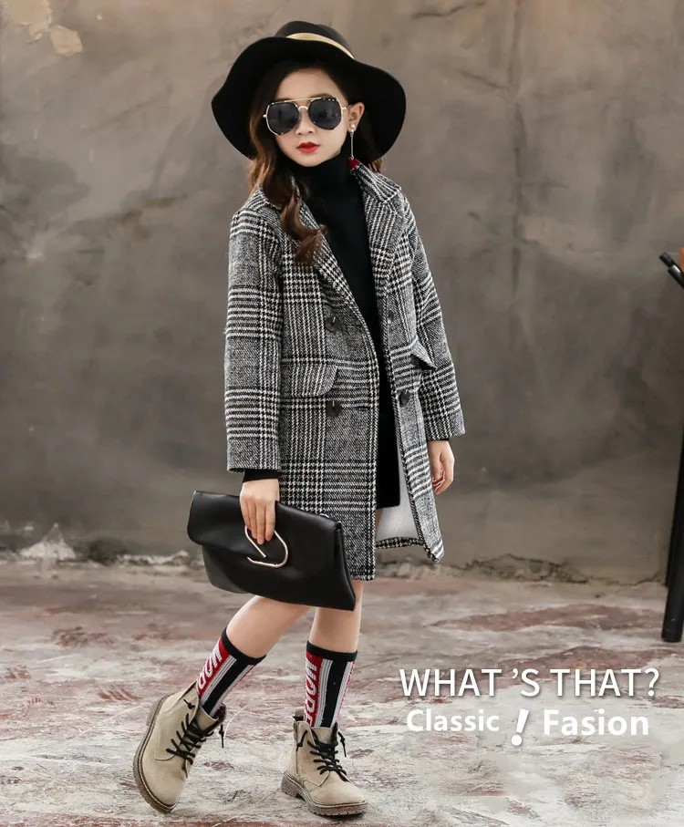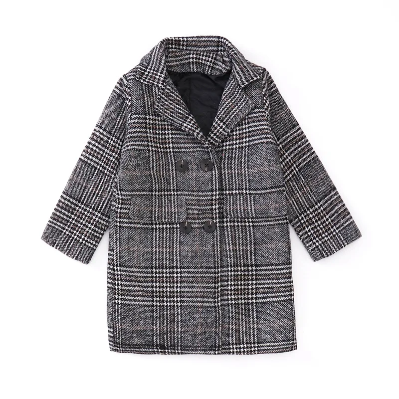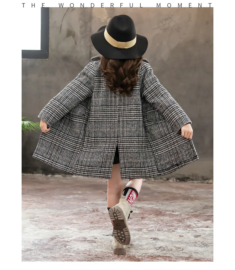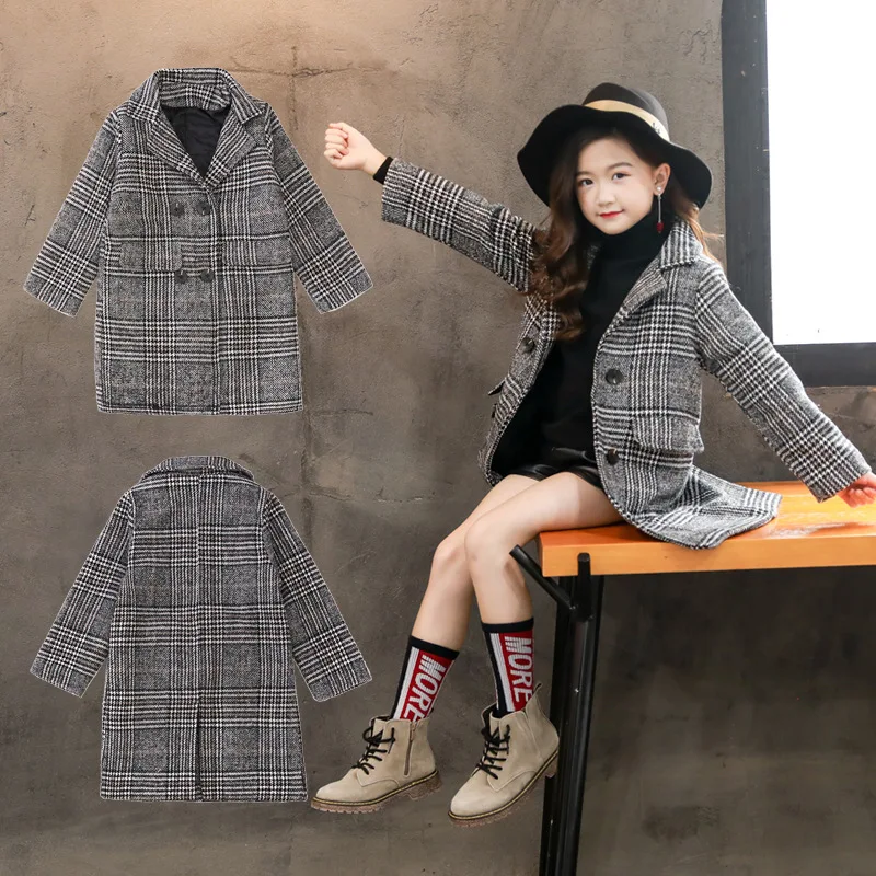 Пальто для девочек, Осень-зима 2021, Корейская версия серого цвета, клетчатое пальто с рисунком гусиные лапки, детское шерстяное пальто одного поколения
