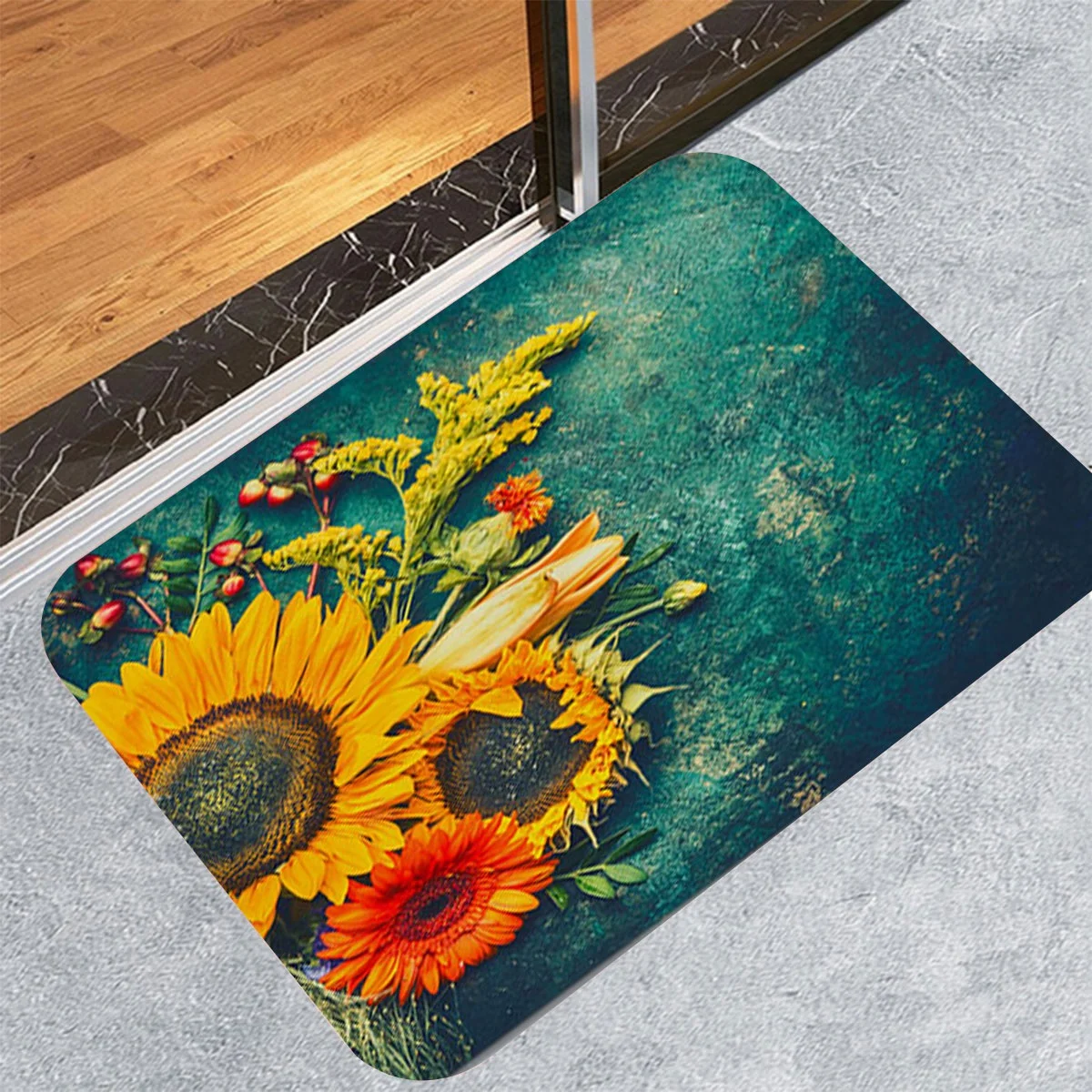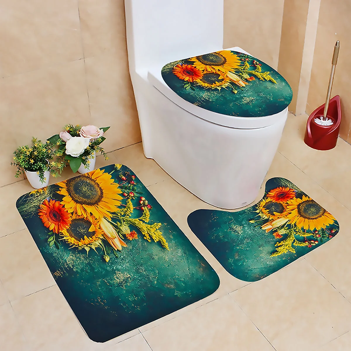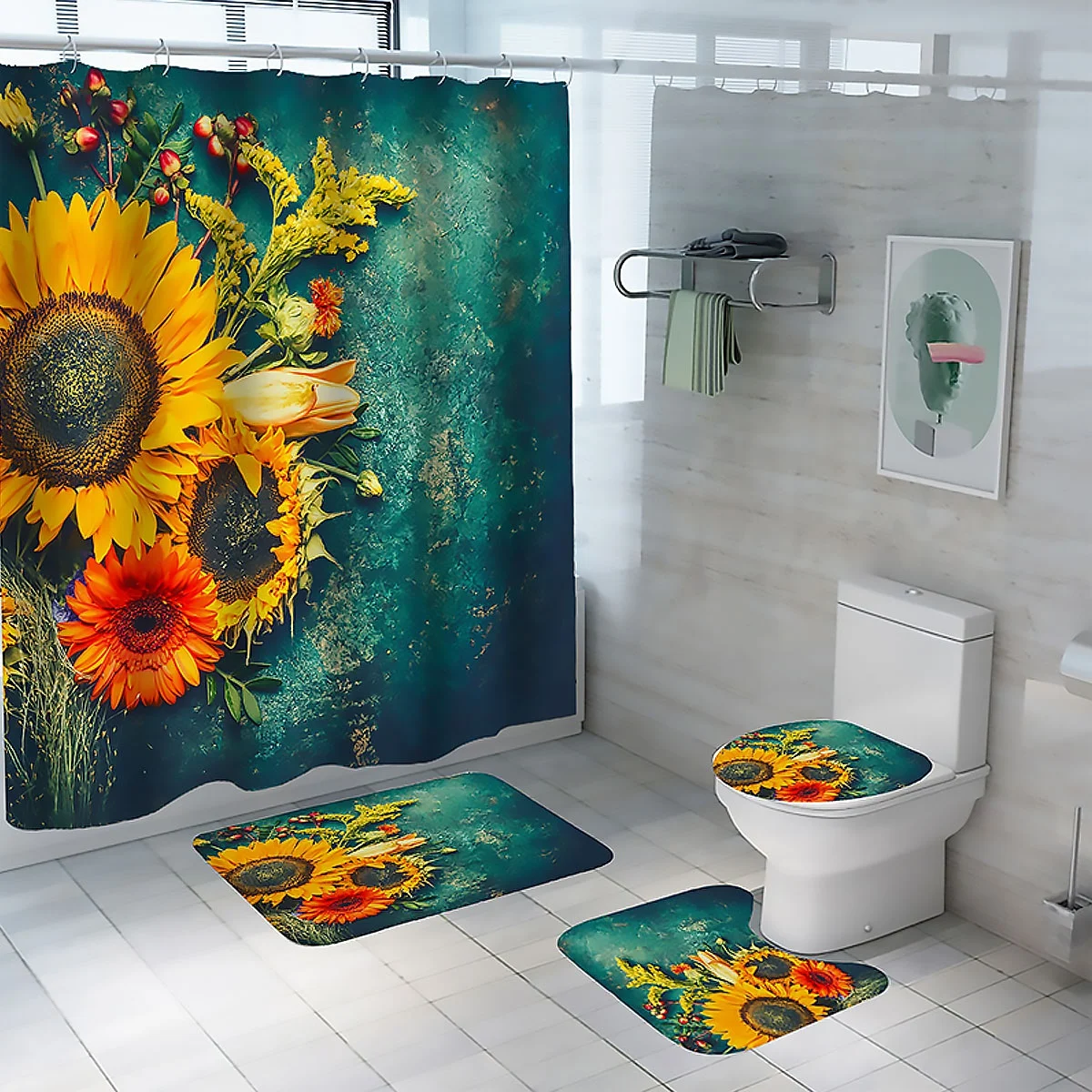 Винтажный набор для ванной комнаты, декоративная темно-зеленая душевая занавеска с принтом подсолнуха, чехол на сиденье унитаза, коврики для ванной, дверной коврик, набор занавесок для душа
