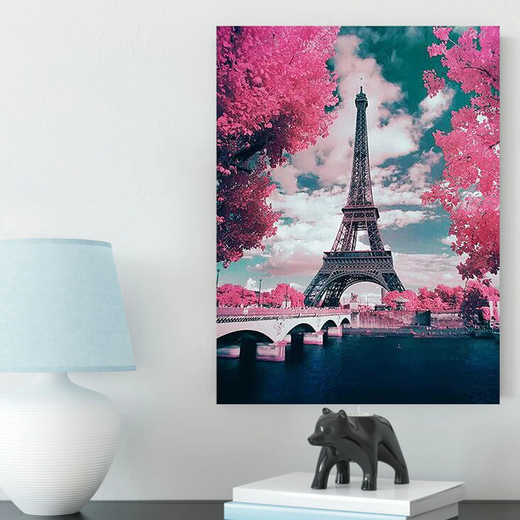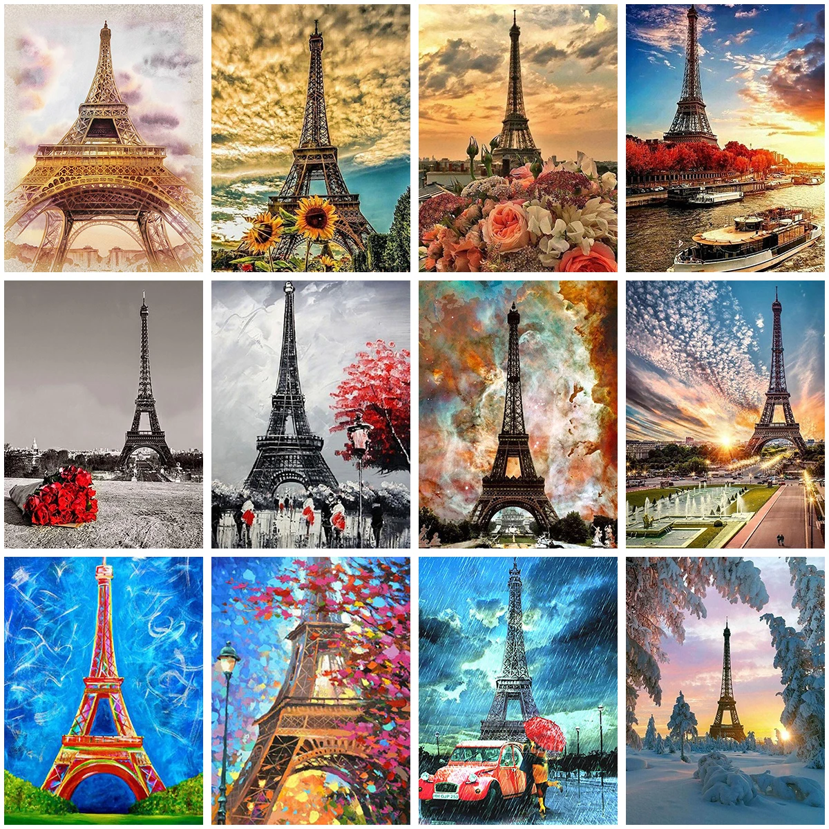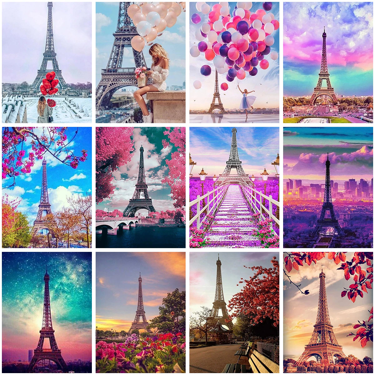Алмазная живопись 5D сделай сам, рисунок с изображением Парижской башни, ландшафта, архитектуры, вышивка крестиком, мозаика, декоративная вышивка, подарок для дома