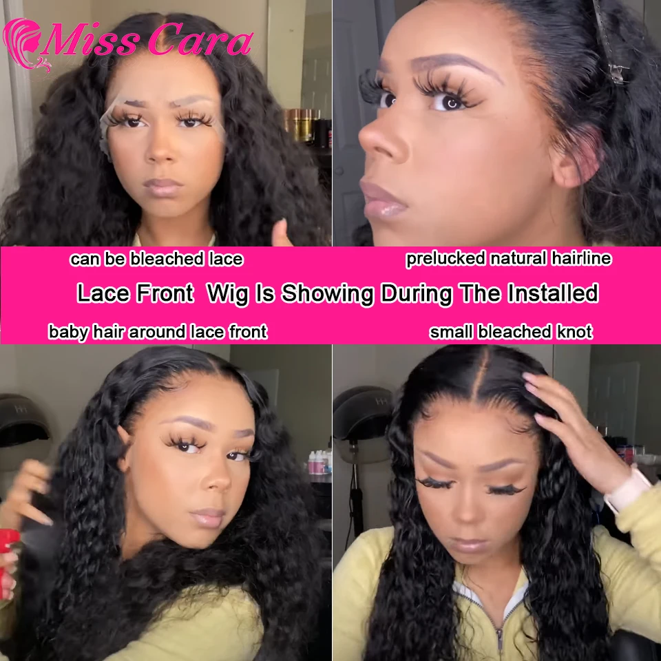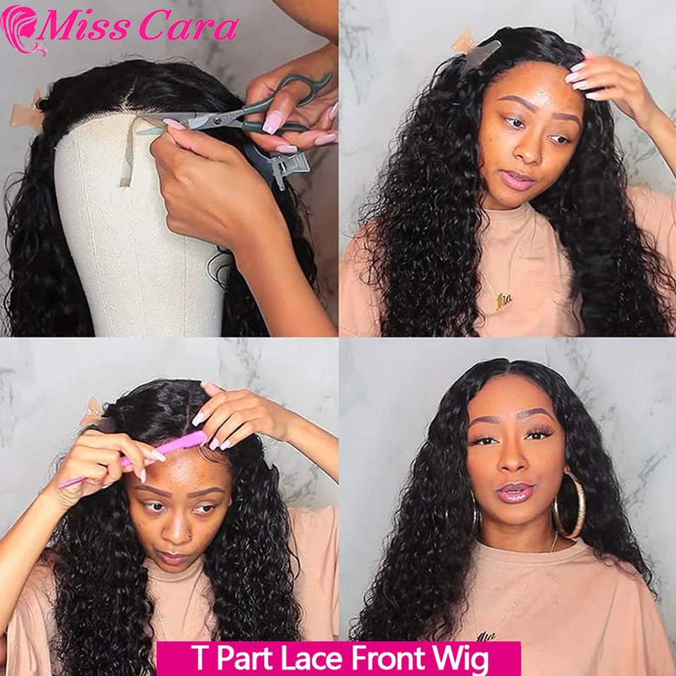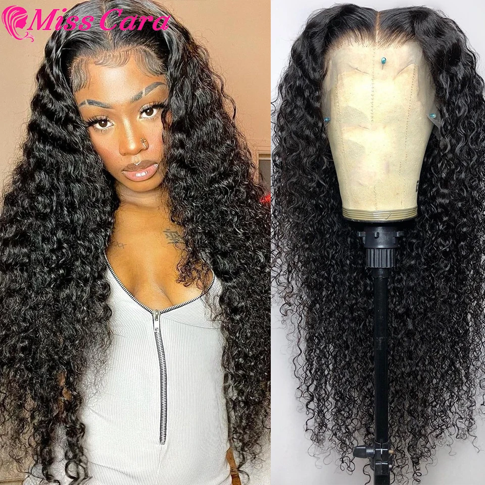 Прозрачный парик Miss Cara с T-образной передней частью, парик свободного покроя с глубокими волосами, предварительно выщипанный парик на сетке 4x4, парик из человеческих волос для женщин, вьющийся парик