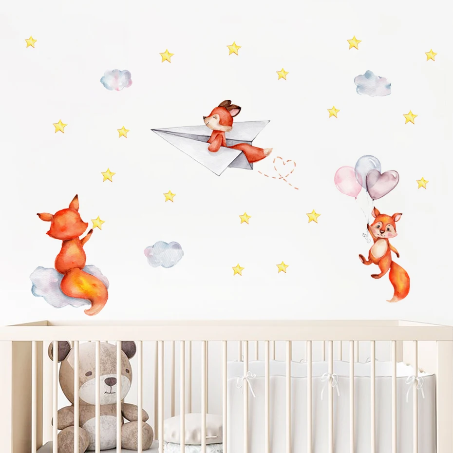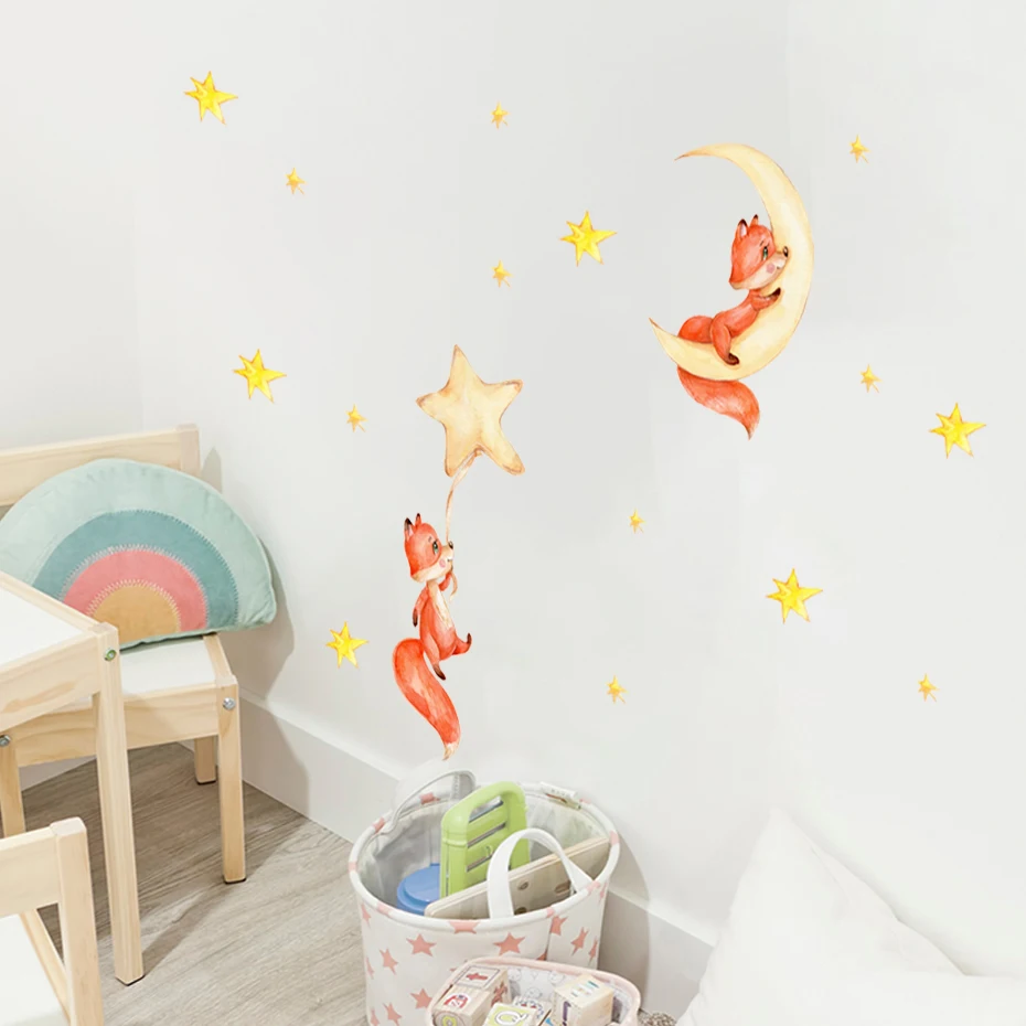 Мультяшные милые лисы Облака Звезды Луна Фотообои наклейки для детской комнаты интерьер украшение для дома