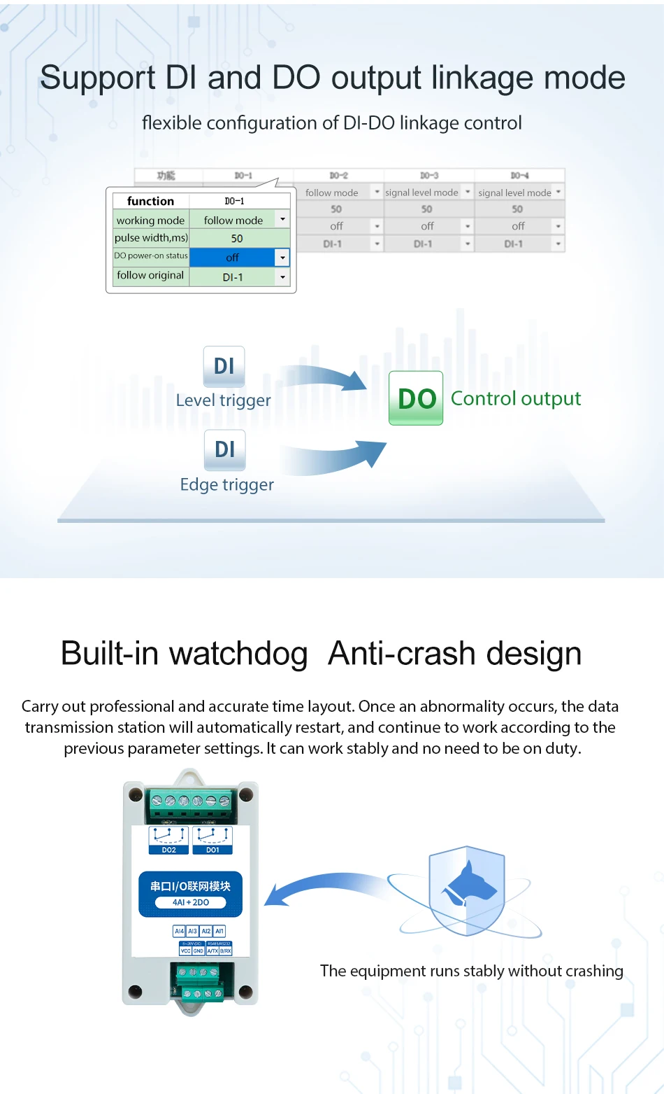 RS485 2DI + 2AI + 2DO ModBus RTU MA01-AACX2220 IO сетевые модули с ...