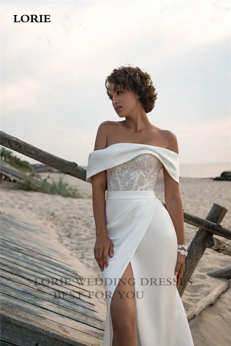 Кружевное свадебное платье с юбкой-годе LORIE, женское привлекательное мягкое атласное свадебное платье с открытыми плечами и разрезом сбоку, 2022