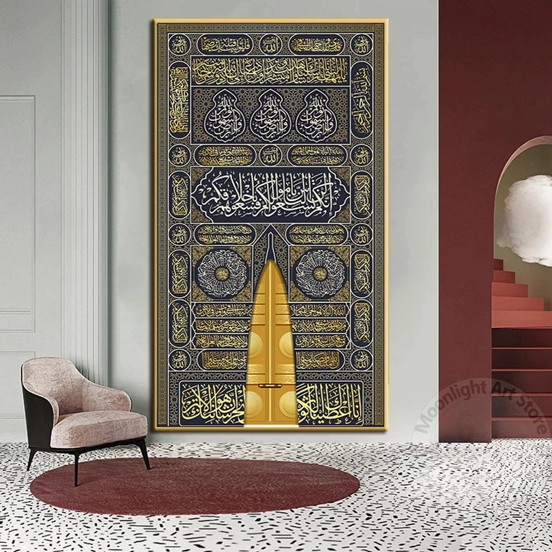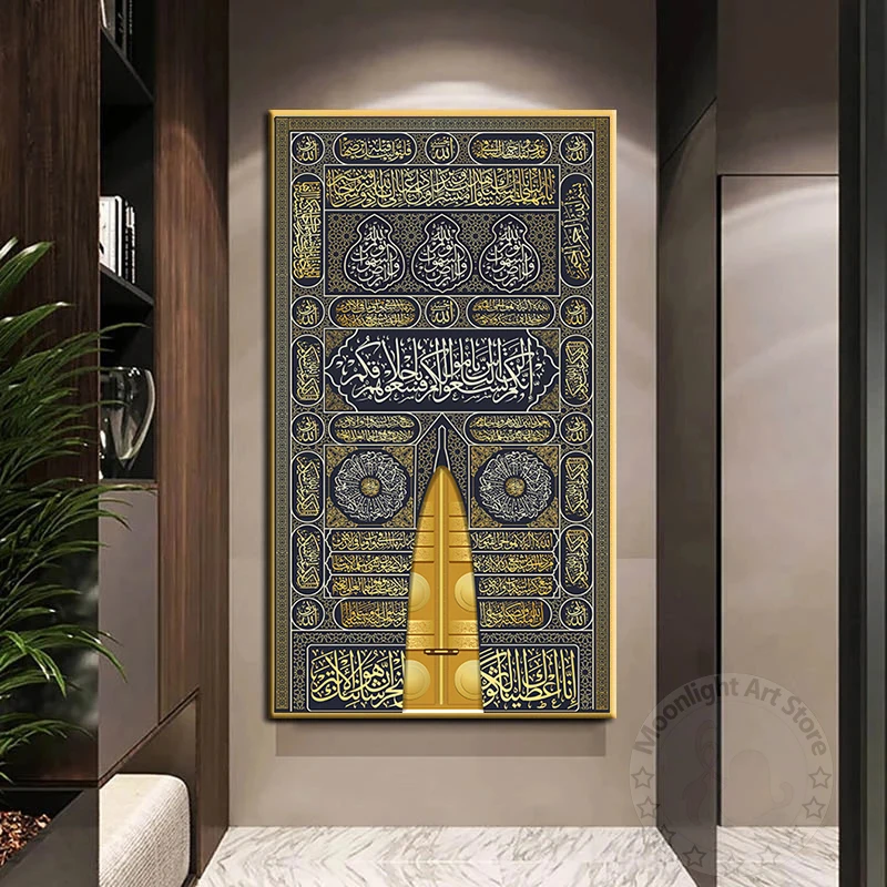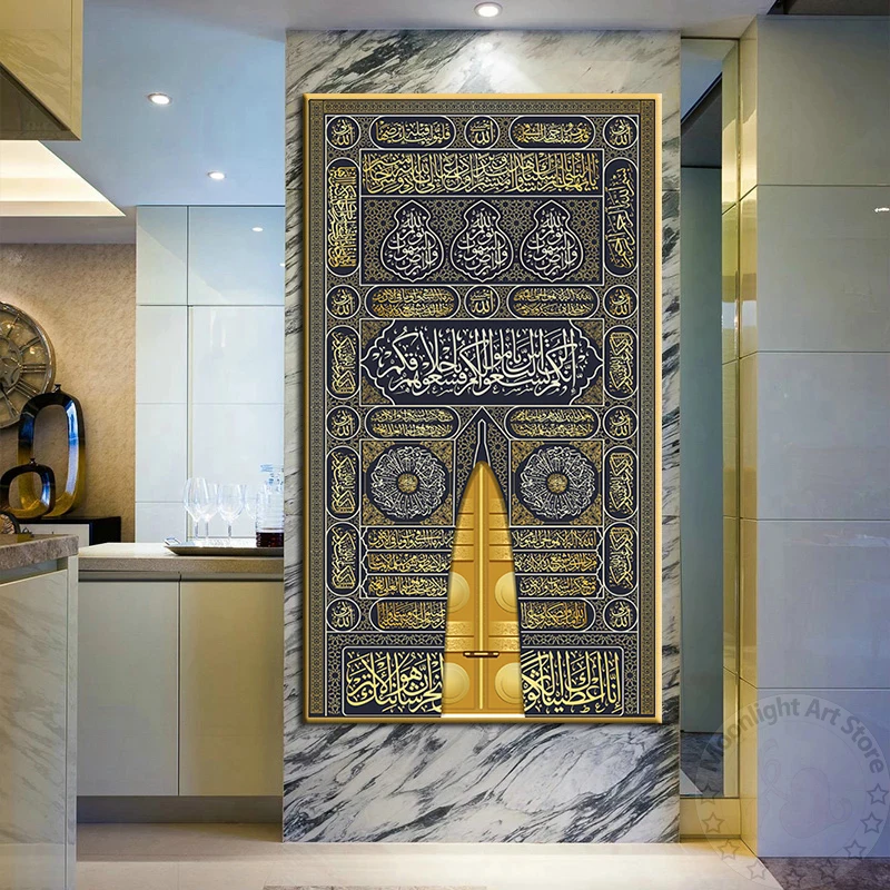 Роскошные золотые двери Кааба исламский постер печать арабская каллиграфия религиозные стихи Коран Холст Картина мусульманский домашний декор стен