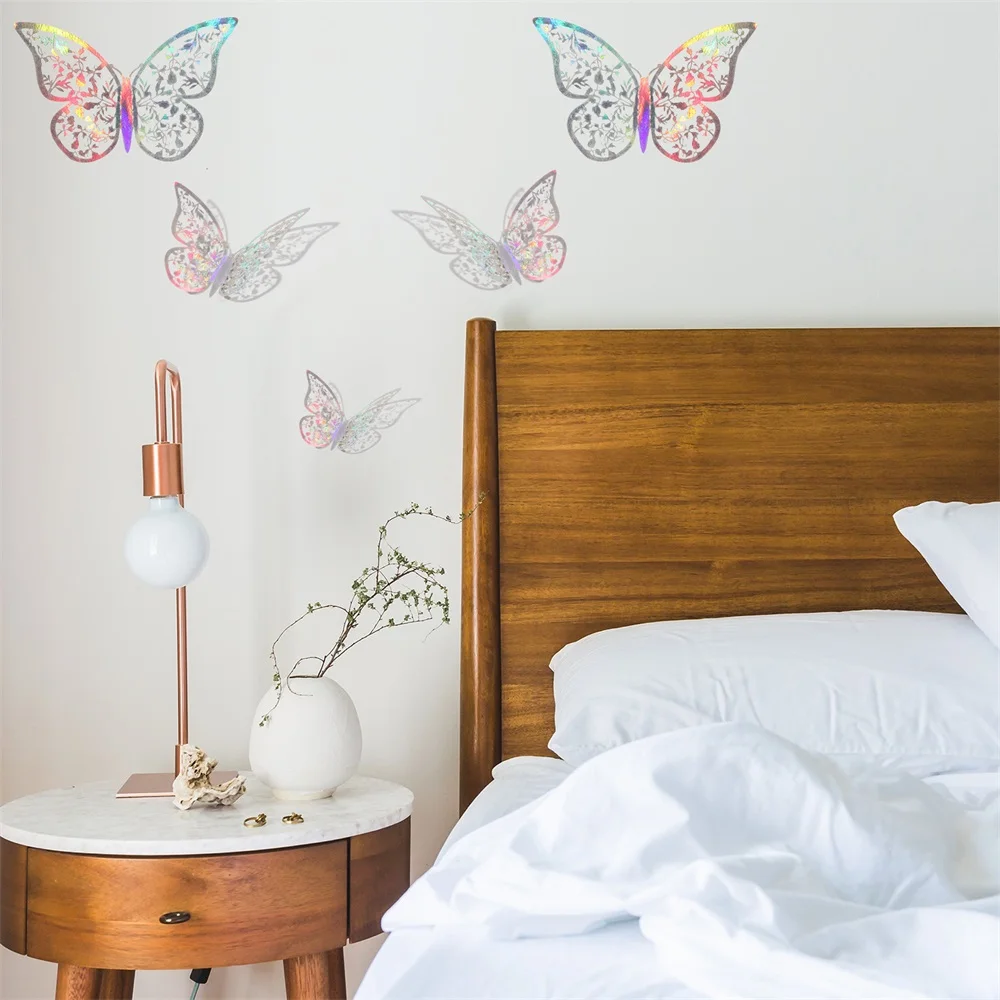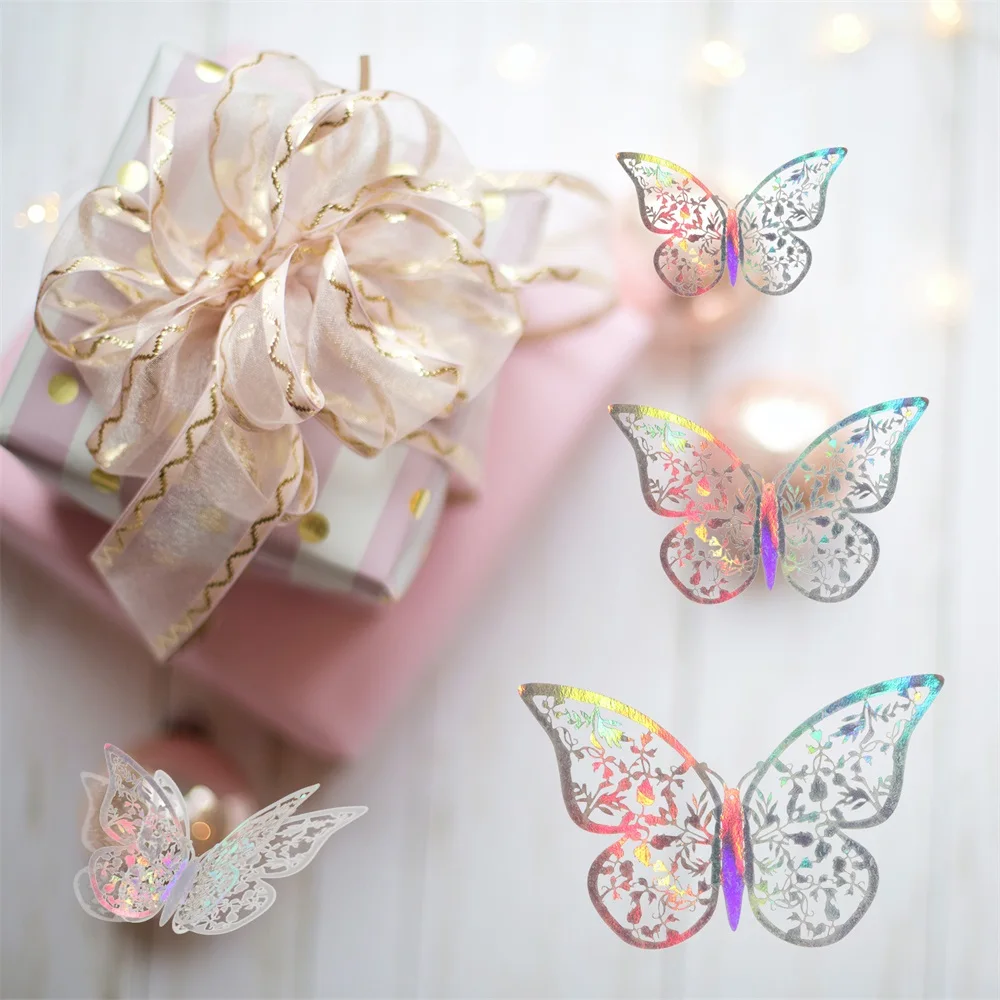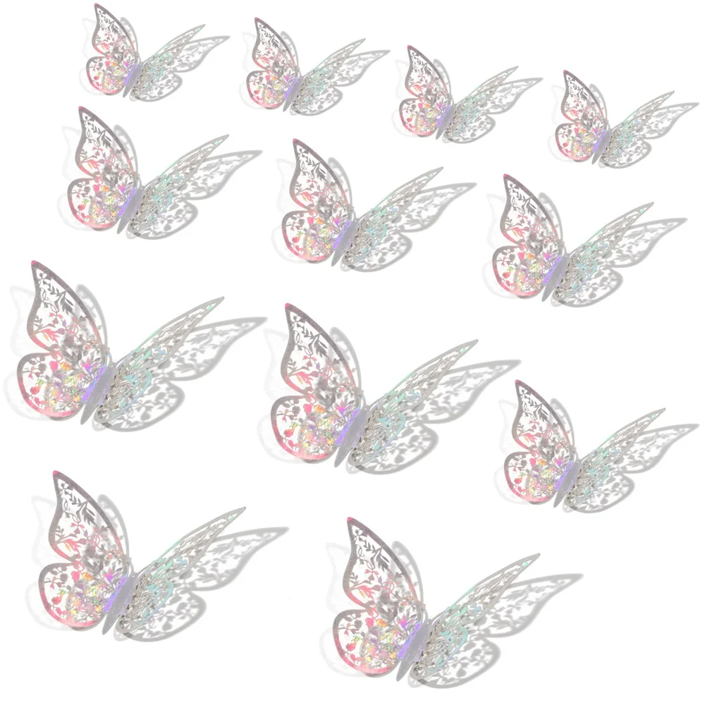 12 шт. 3D Наклейка на стену в виде бабочки, текстура, золотосеребророзовое золото, полые, металлическая, Свадебная вечеринка, домашний декор, поставка