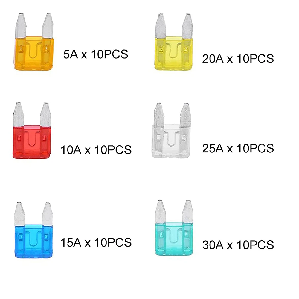60 шт. мини-комплект предохранителей: 5A/ 10A/ 15A/ 20A/ 25A/ 30A (10 шт. каждой модели).