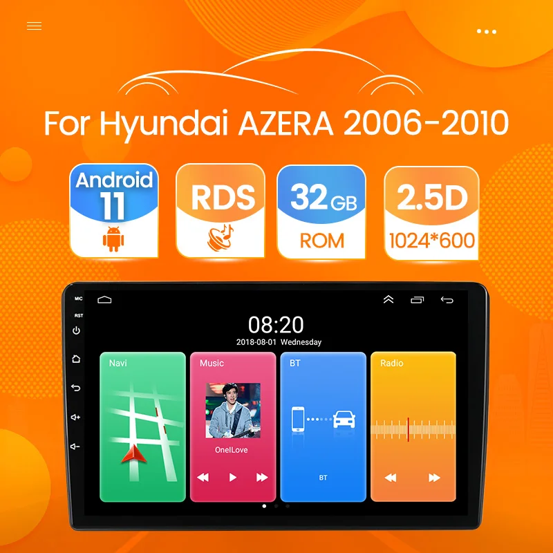 Автомобильный радиоприемник на Android 11 RDS 2 + 32 ГБ для Hyundai AZERA 2006 2007 2008 2009 2010 GPS Навигация стерео Мультимедийный Плеер Carplay