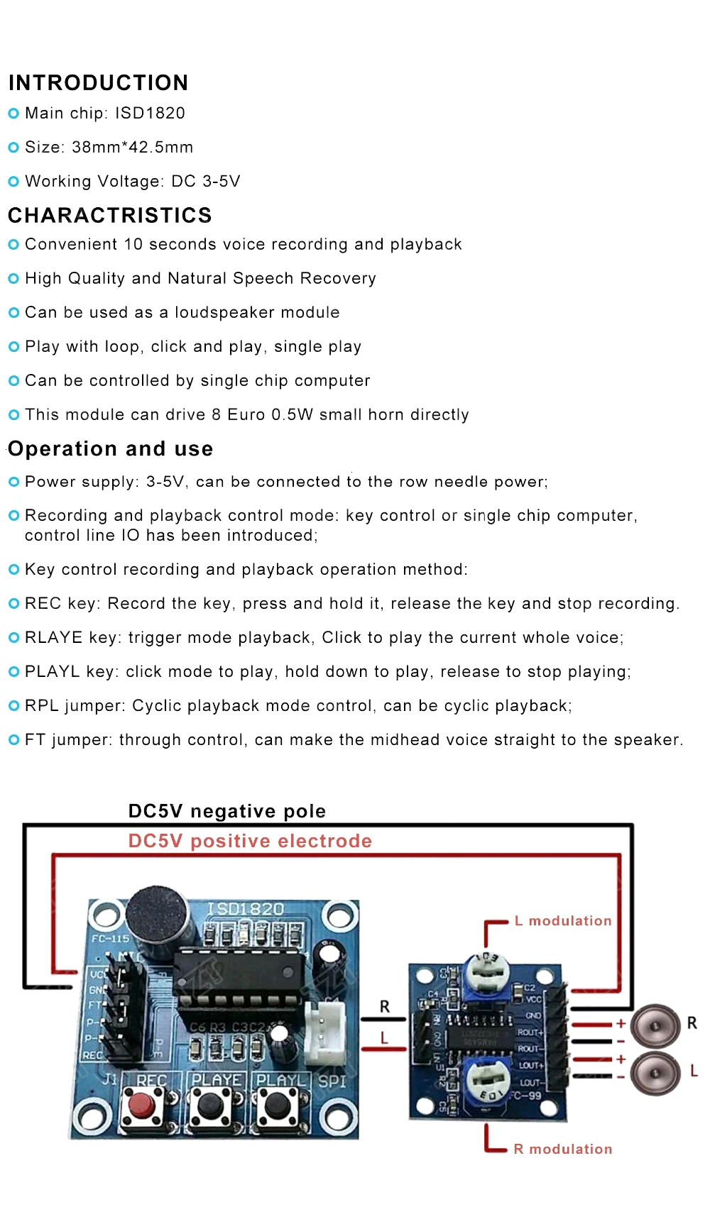 Номер моделиISD1820 Voice Recording Recorder Module