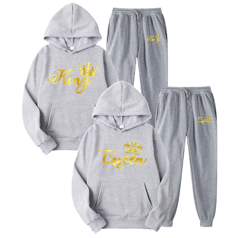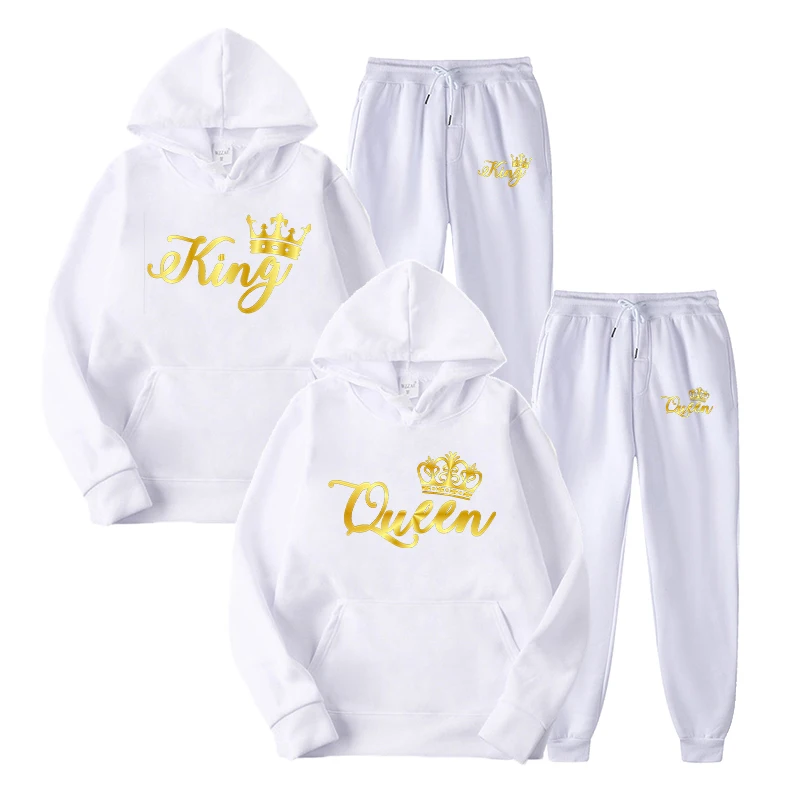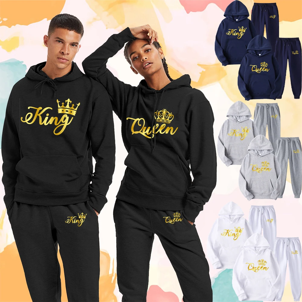 2022, Модный комплект спортивной одежды для пары, для мужчин, для короля или женщин, с рисунком королевы, унисекс, костюм из двух предметов, толстовка и брюки, уличная одежда