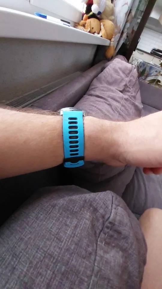 Ремінець хороший. Зверху - колір хакі, знизу - чорний. Резина на вигляд і на ощуп як замша. Кріплення на вигляд надійне. Як поведе себе ремінець у воді при плаванні в басейні ще не знаю. Приємно, що ремінець іде в комплекті з кріпленнями-фіксаторами до годинника. Продавця рекомендую.