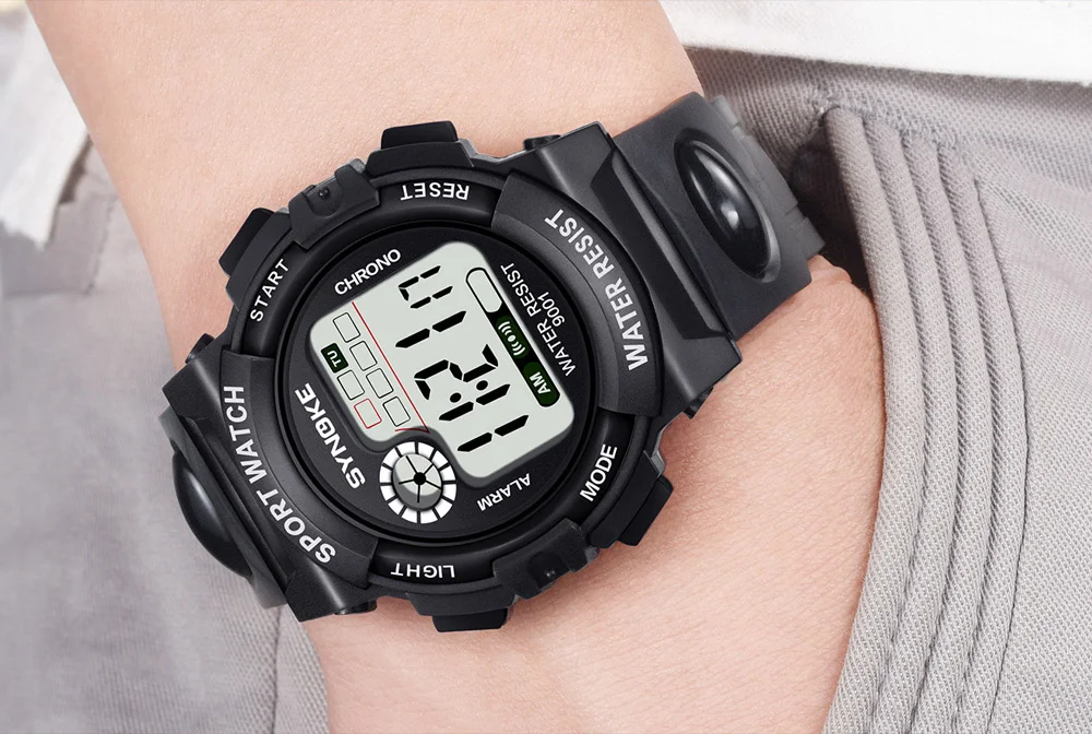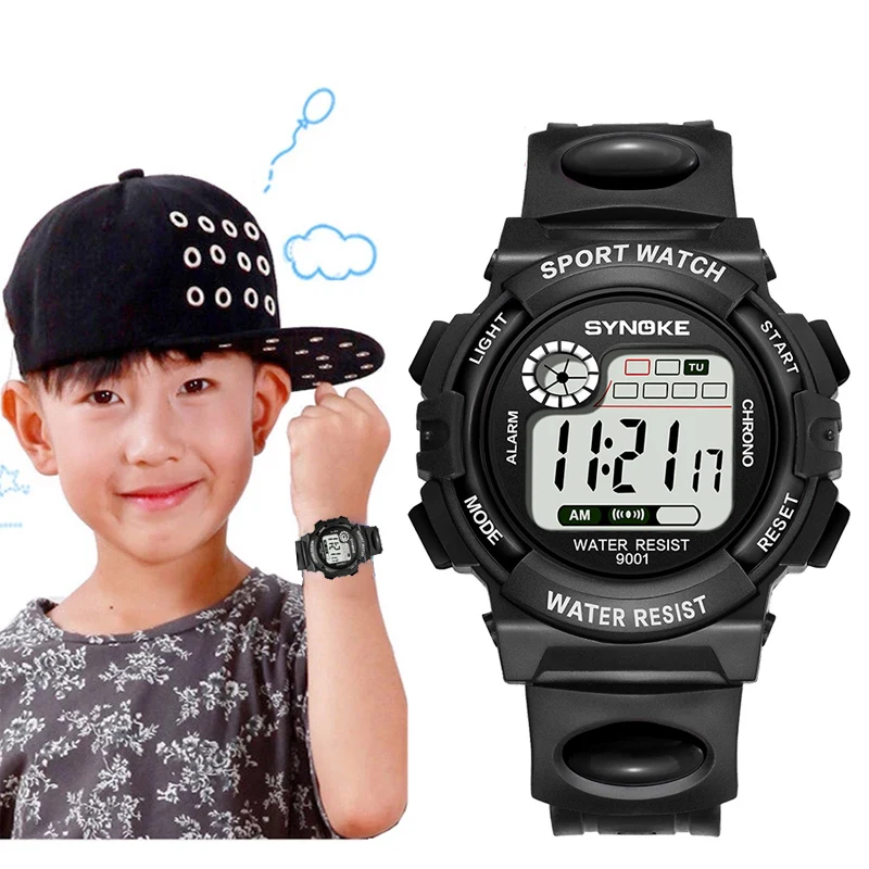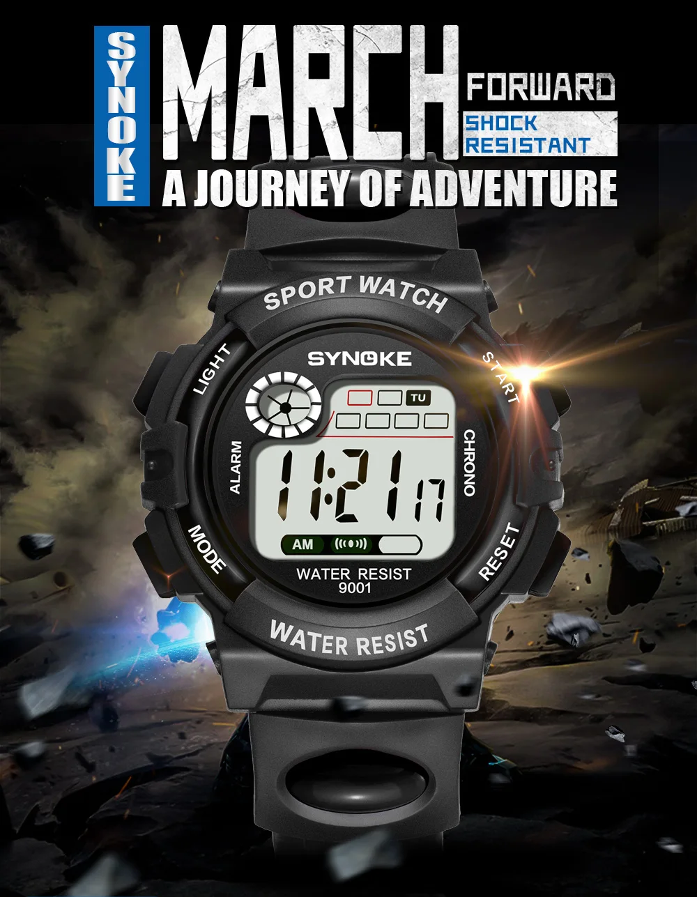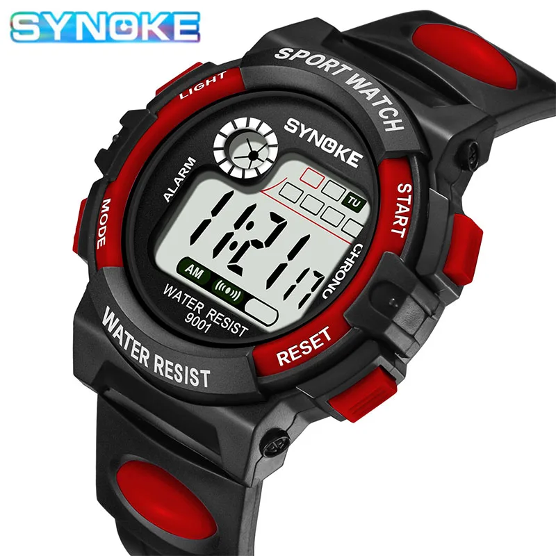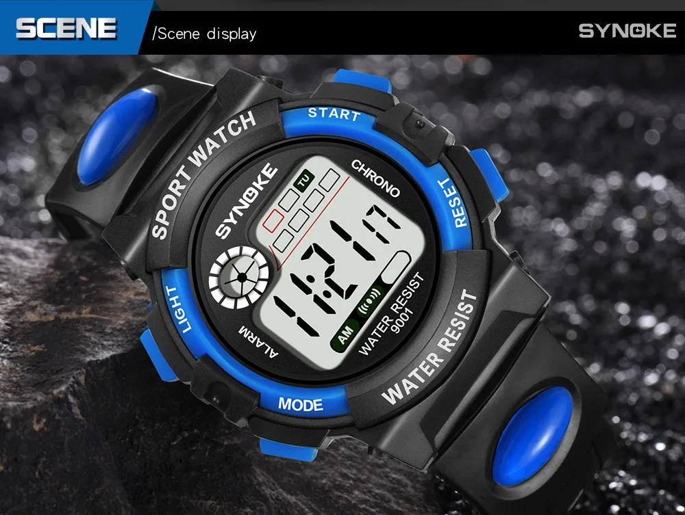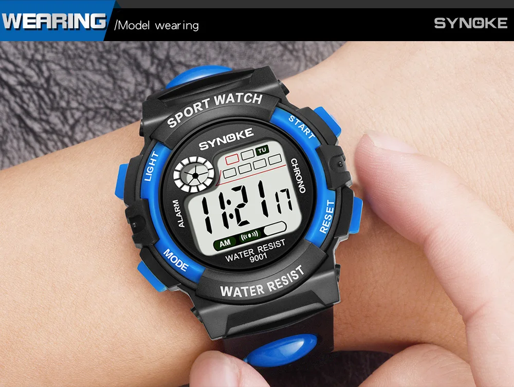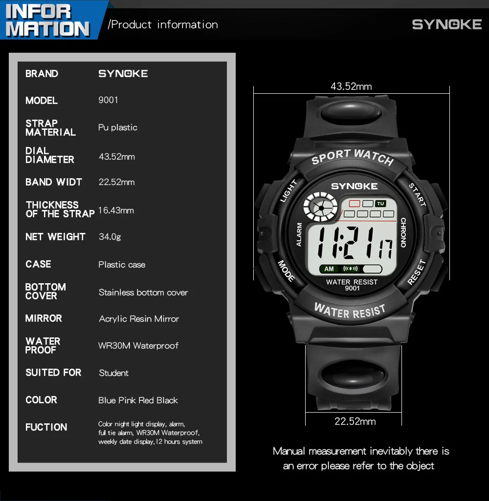 SYNOKE цифровые детские часы для занятий спортом на открытом воздухе водонепроницаемые черные электронные наручные часы для мальчиков и девочек