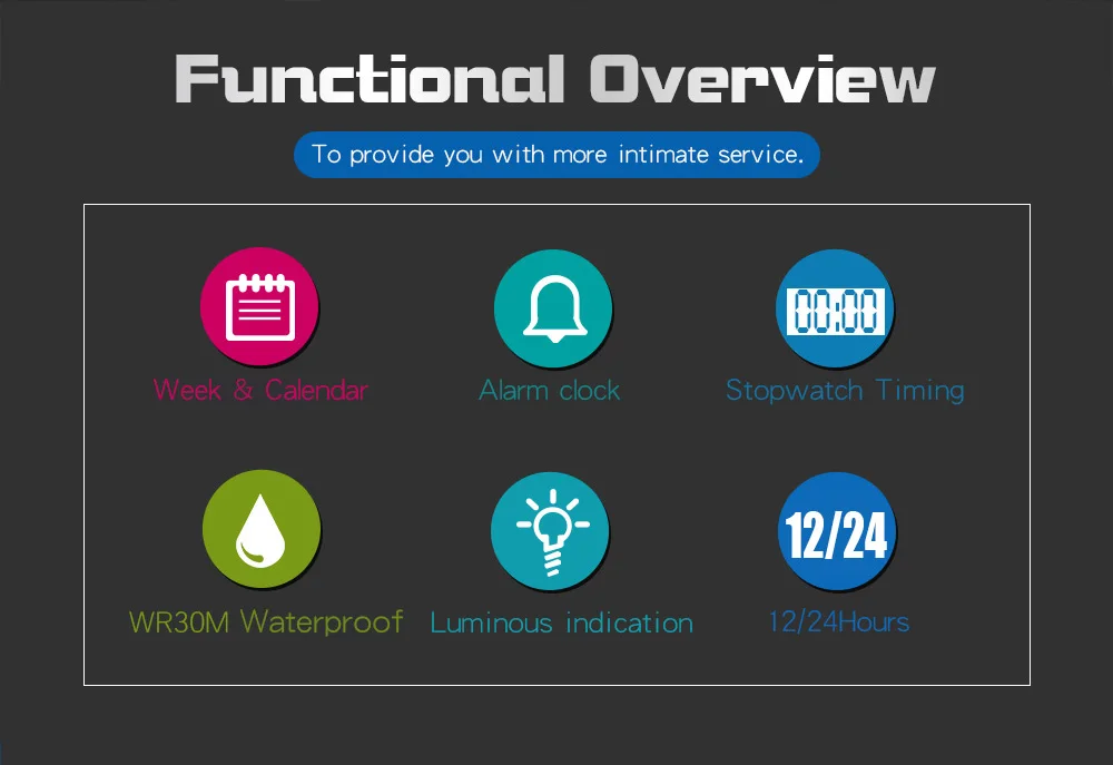 Описание:Характеристики: новый большой экран, недорогие дренажные модели, экономичные, красочные светящиеся.Функции: световой сигнал, будильник, ежечасное время, секунды работы, отображение дня недели, система 12/24 часов.Водонепроницаемый: WR30M водонепроницаемыйДвижение: электронное движение с высоким качествомЧехол Материал: АБС-пластик чехолМатериал ремешка: ПУ пластиковый ремешокМатериал зеркала: акриловое зеркало из смолыМатериал нижней крышки: Нижняя крышка из нержавеющей сталиМатериал пряжки: Пряжка из нержавеющей сталиПараметр:Модель батареи CR2032Вес нетто: 34 гВес брутто: 39 гПолная длина часов: 230 ммДиаметр циферблата: 43,52 ммТолщина циферблата: 16,43 ммШирина ремешка: 22,52 мм