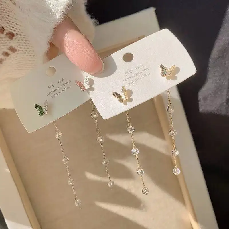 Латы тренд бабочка жемчуг длинные серьги для женщин Луна Звезда цветок Стразы свадебные серьги с подвесками модные корейские ювелирные изделия