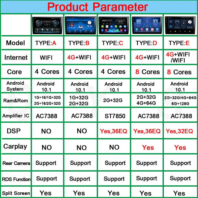 4G + WIFI + DSP + Carplay(4G + 64G)/WIFI + DSP + Carplay(2G + 32G)/WIFI + DSP + Carplay(4G + 64G)/