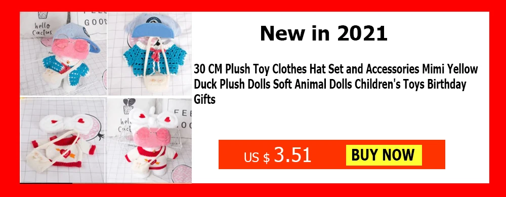 Новинка и высокое качествоНаименование товара: плюшевая игрушечная одеждаМатериал: полипропиленовый хлопокРазмер: размер костюма для желтой утки 30 смСтили: 13 стилей на выборВ комплект входит: 1 плюшевая игрушка (без других аксессуаров)