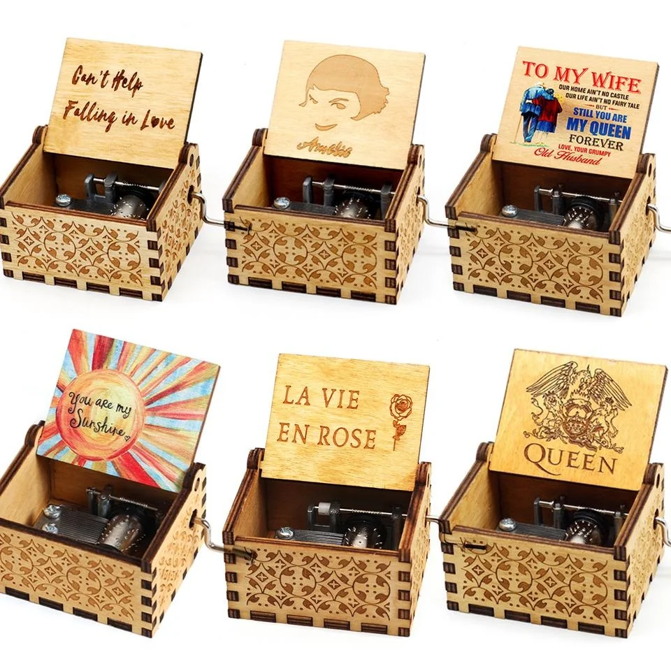 Новинка 2021, деревянная музыкальная шкатулка с ручным приводом и и...