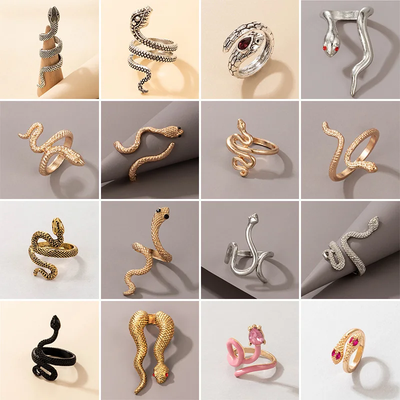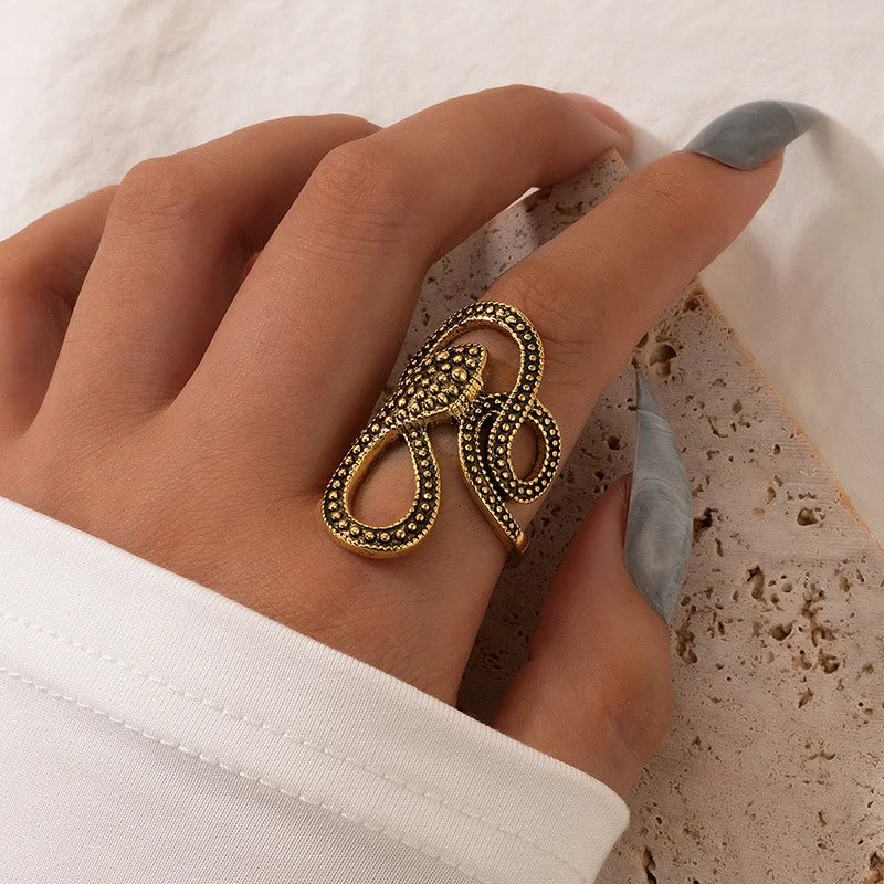 Винтажное богемное открытое Золотое серебряное кольцо в виде змеи на палец, готические панковские массивные кольца, ювелирные изделия
