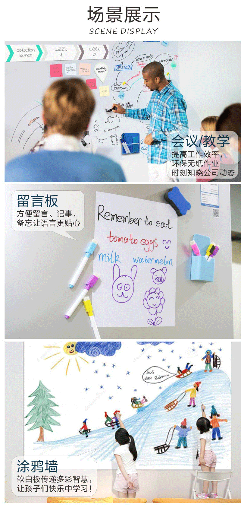 sizeA4 size,210mmx297mm/8.2"x11.7",vinyl white board sticker wall stickers