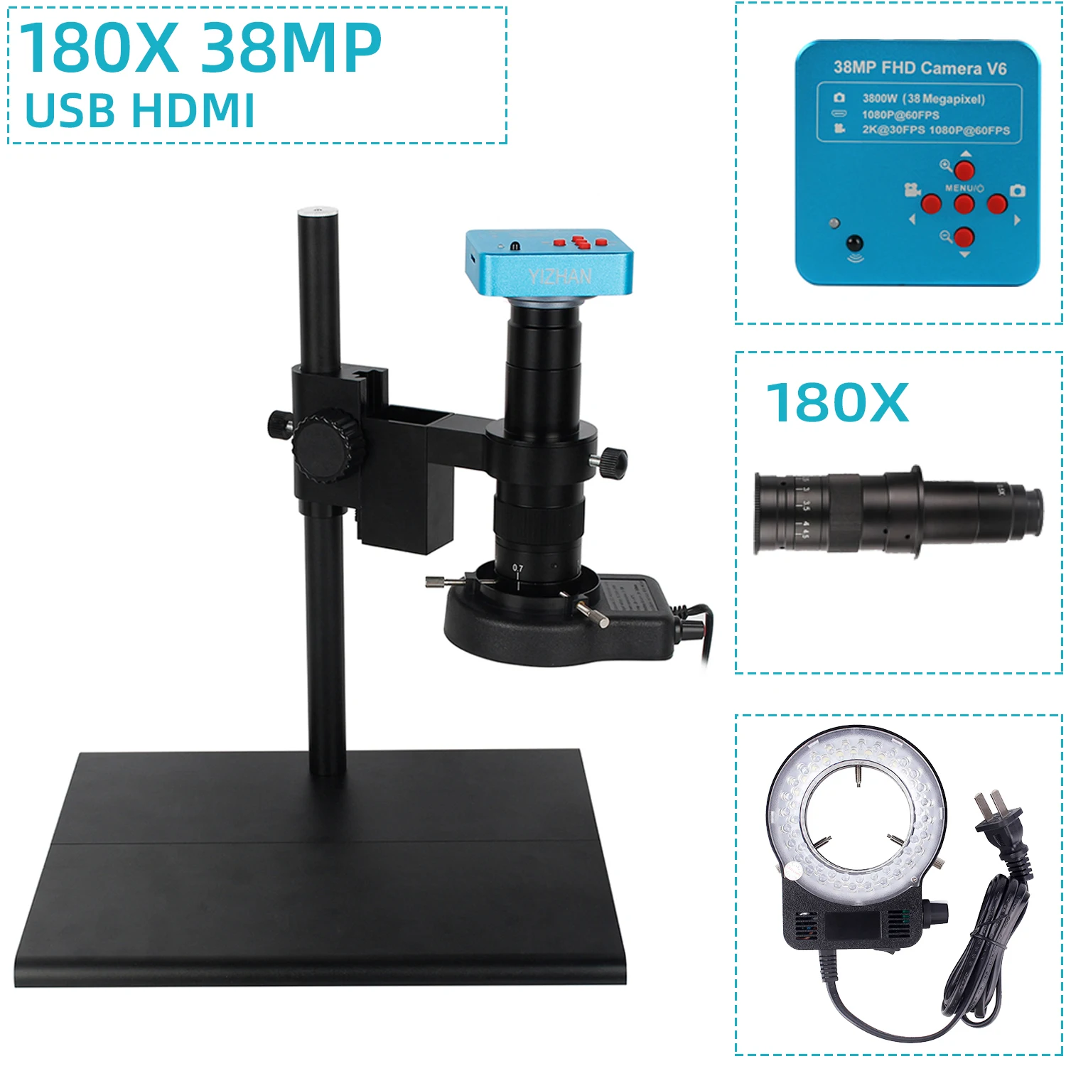 Цифровой микроскоп YIZHAN 38MP с интерфейсом HDMI, профессиональный 180X VGA USB маленький верстак, микроскоп для фотографий, инструменты для ремонта