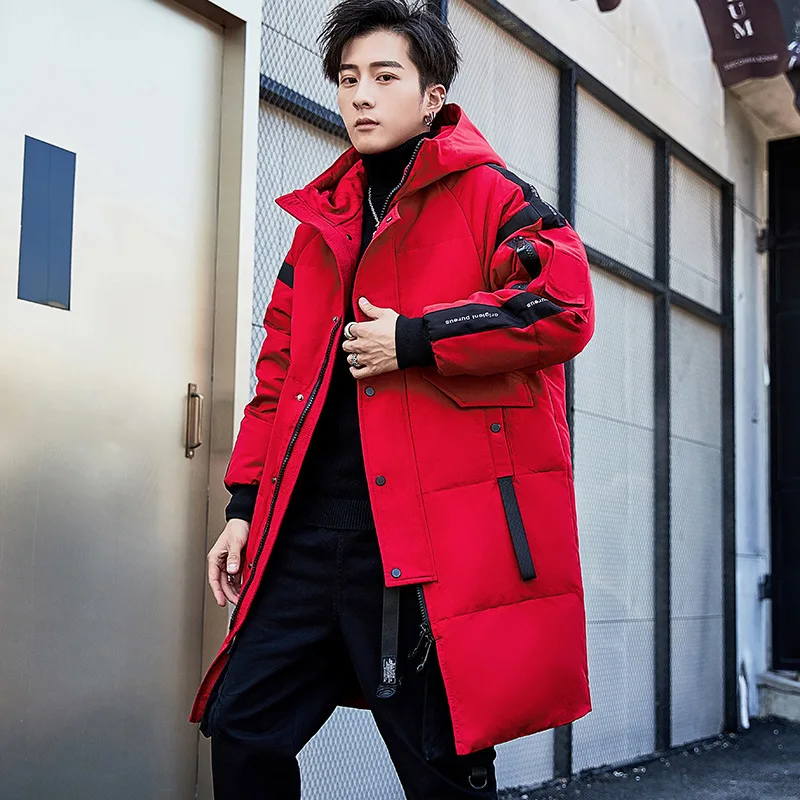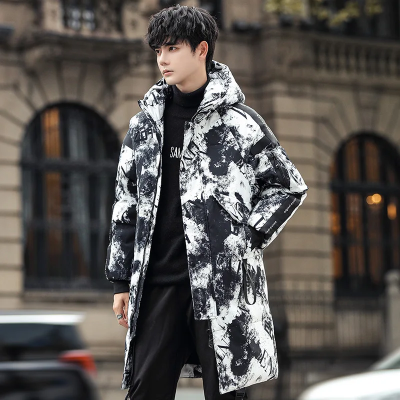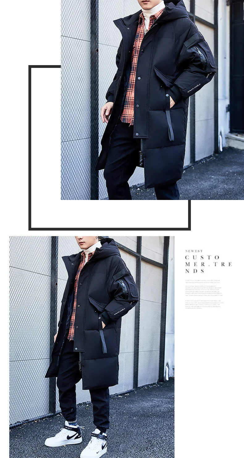 90% белый утиный пух, мужские пуховики, корейская мода, с капюшоном, пуховики средней длины, мужские зимние новые парки, одежда, мужские куртки
