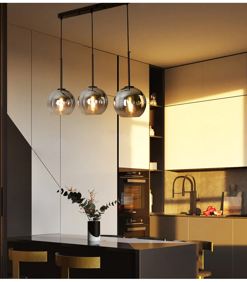 Скандинавская люстра с градиентным стеклянным шаром, прикроватная лампа для столовой, гостиной, барной стойки, кухни, ресторана