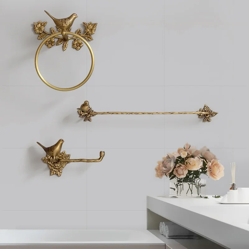 Античный латунный набор банных полотенец, полотенце "Птица", кольцо для полотенец, резной держатель для туалетной бумаги, креативное полотенце, 18 дюймов, аксессуары для ванной комнаты