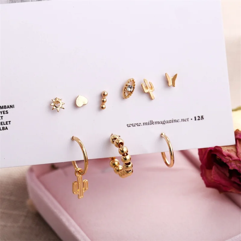Набор серег-гвоздиков для женщин 9 шт.компл. в стиле панк, модные п...