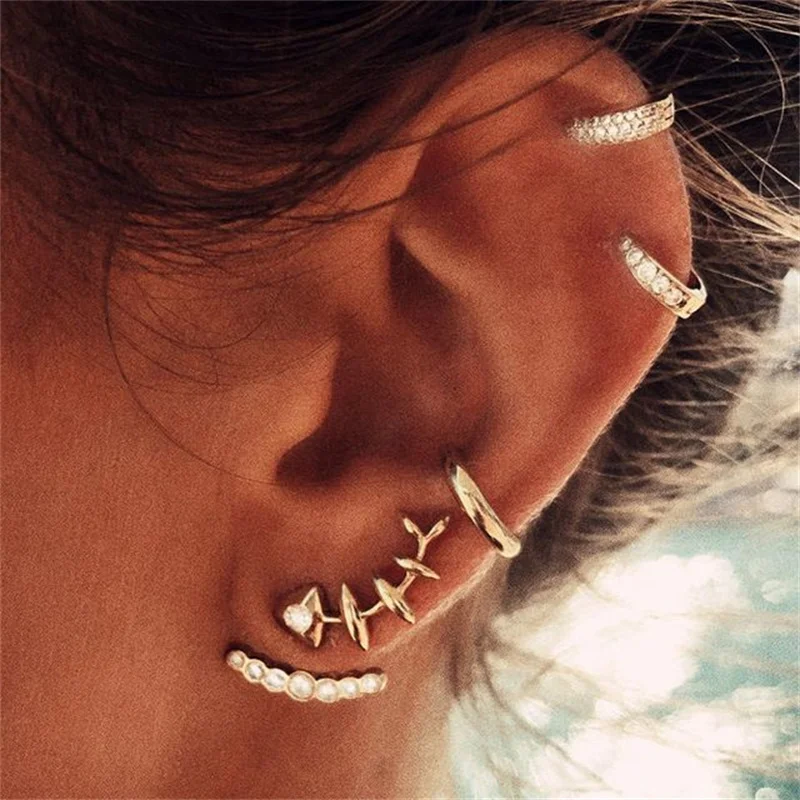 Женский винтажный Металлический Набор серег-колец, серьги в виде мо...