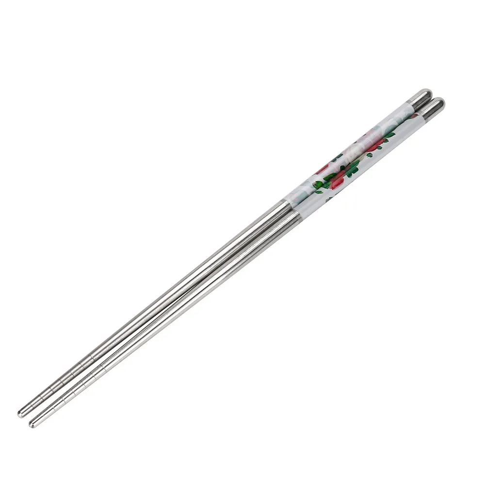 1 пара палочек для еды из нержавеющей стали с белым цветочным узором