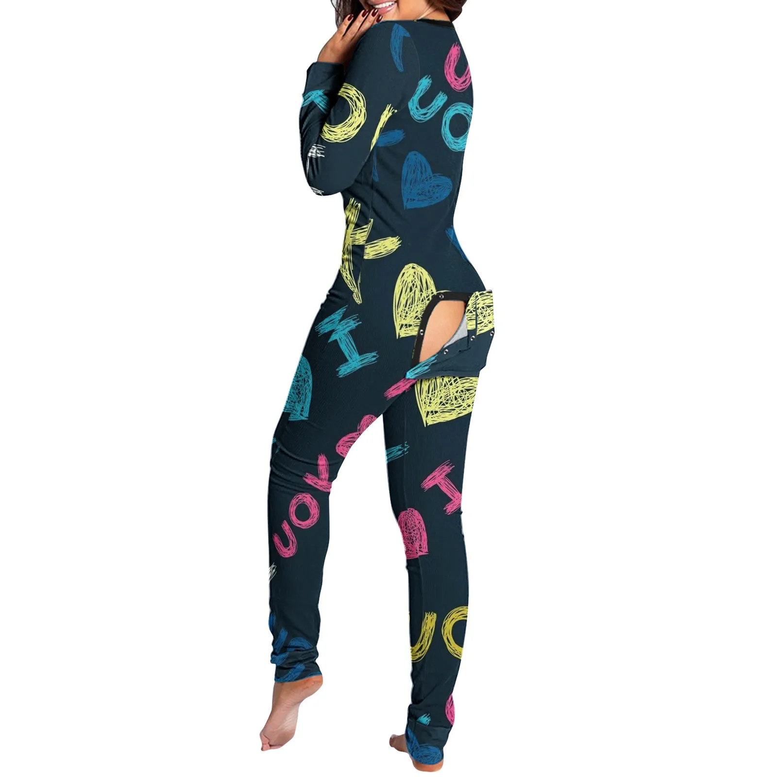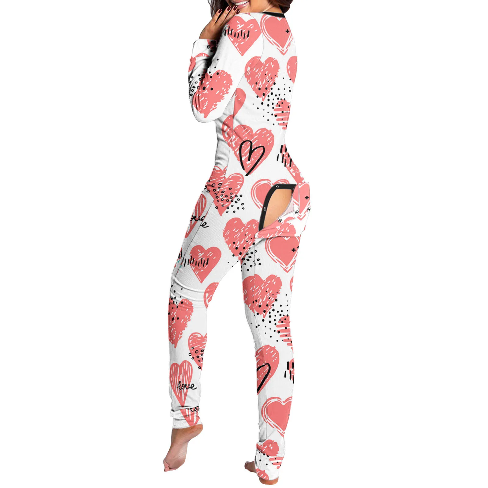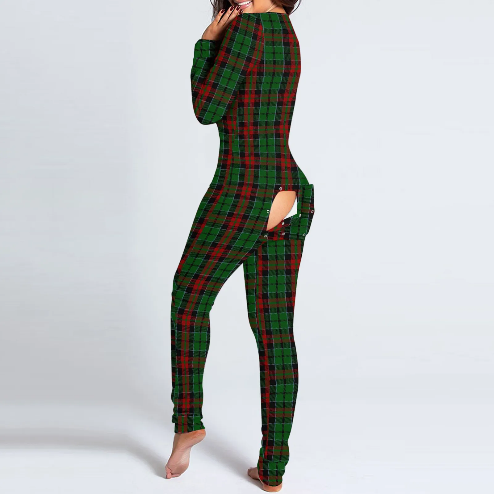 Рождественский комбинезон на пуговицах, Женская функциональная пижама с принтом и длинным рукавом, комбинезон на пуговицах для взрослых, одежда для сна