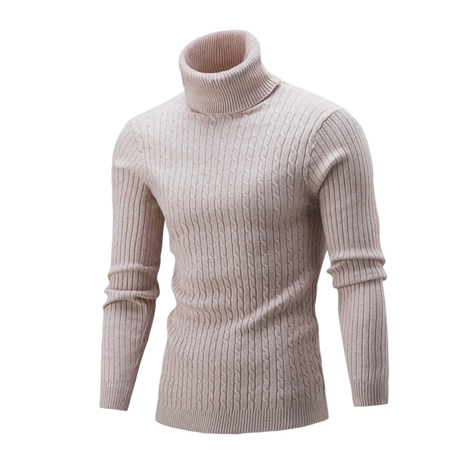 Мужской Повседневный свитер, однотонная Водолазка с длинным рукавом, теплый вязаный пуловер, джемпер, вязаная уличная одежда для осени и зимы