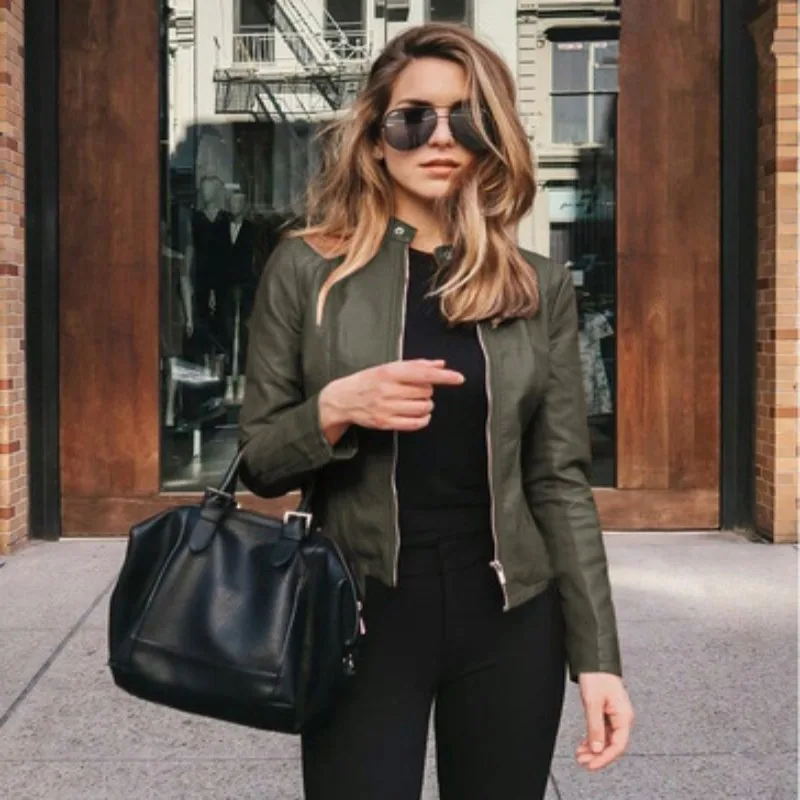 Зимняя женская куртка из искусственной кожи, теплая Модная куртка с длинным рукавом, утепленная женская куртка, однотонная, на весну и осень