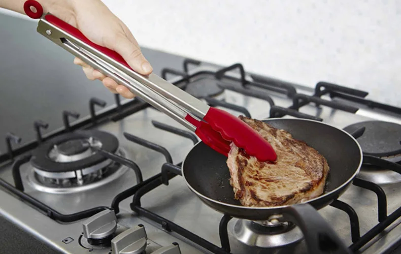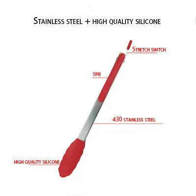 Силиконовые щипцы из нержавеющей стали, нескользящий кухонный прибор с зажимом для приготовления барбекю, салата, гриля, кухонные аксессуары