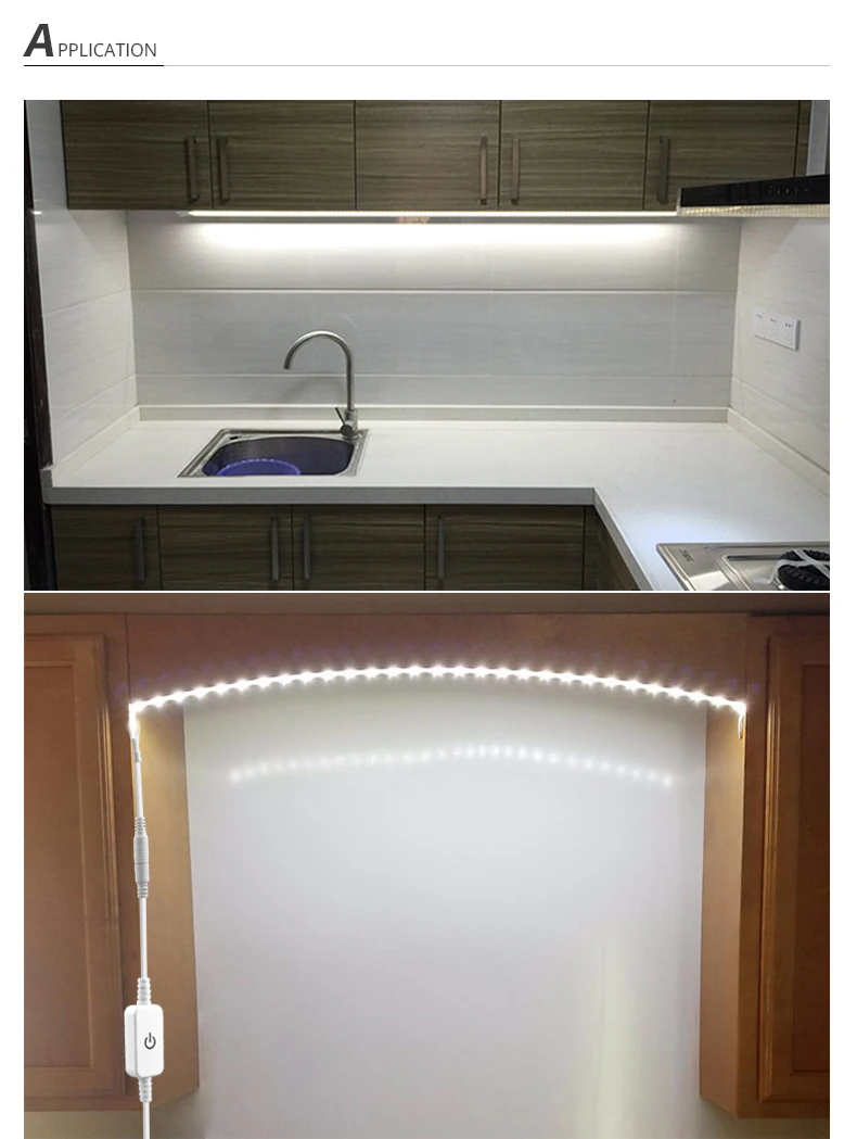 Приглушаемая Светодиодная лента с сенсорным выключателем для шкафа, переменный ток 220 В в постоянный ток 12 В, светильник аемая Диодная лента , клейкие резиновые светодиодные полосы для кухни