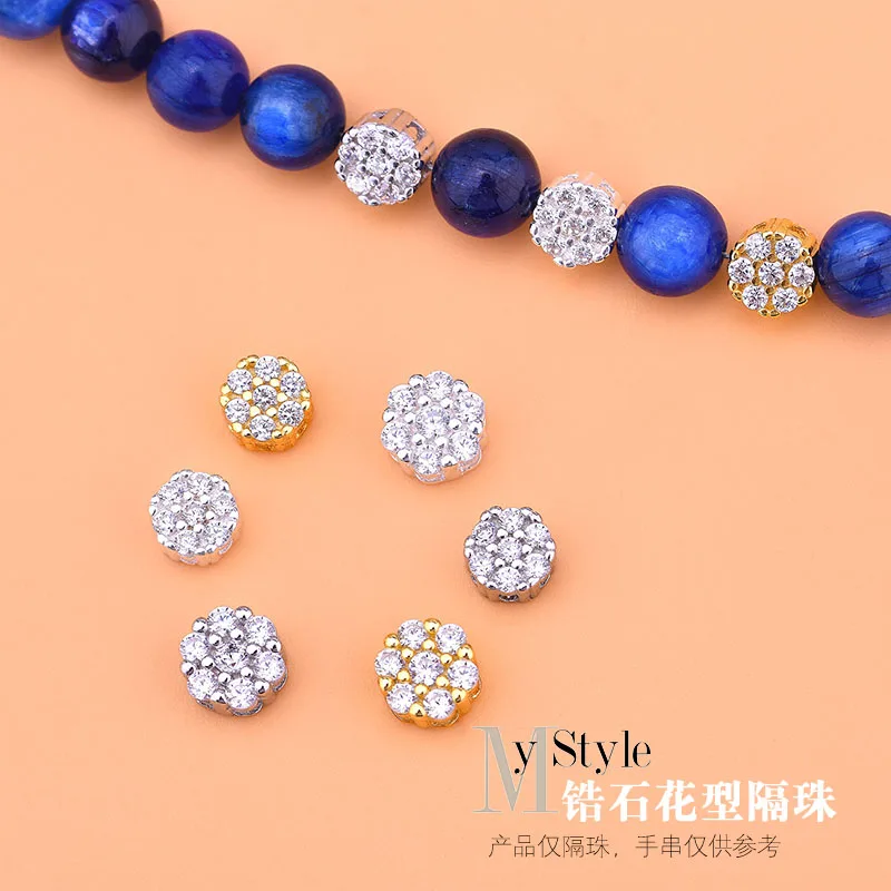 S925 Стерлинговое Серебро инкрустированное цирконием в форме цветка разделитель бисер темперамент универсальное ожерелье на руку